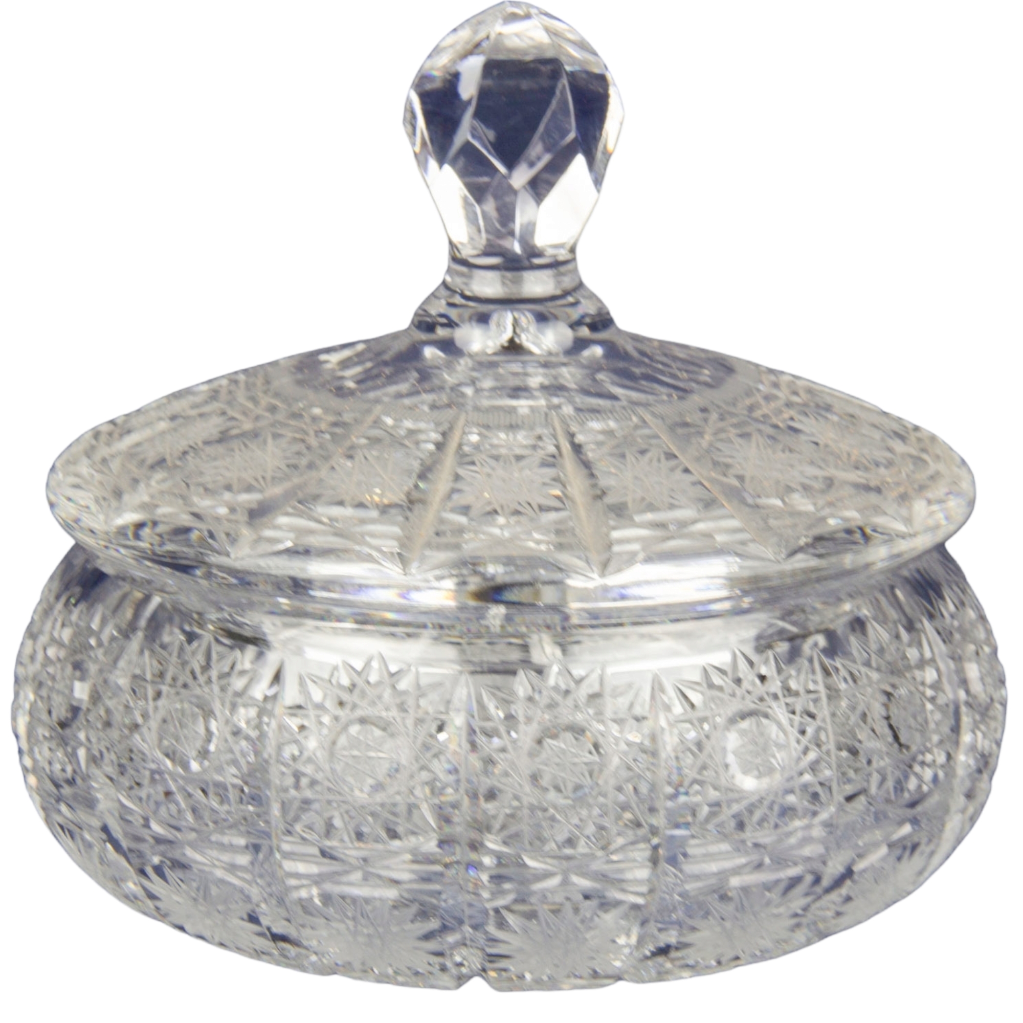 2 OGGETTI IN VETRO CIOTOLA PORTA BONBON in vetro satinato ed UNA SCATOLA CON COPERCHIO in vetro di Boemia h cm 15 x Ø 16,5 / h cm 6 x Ø 17