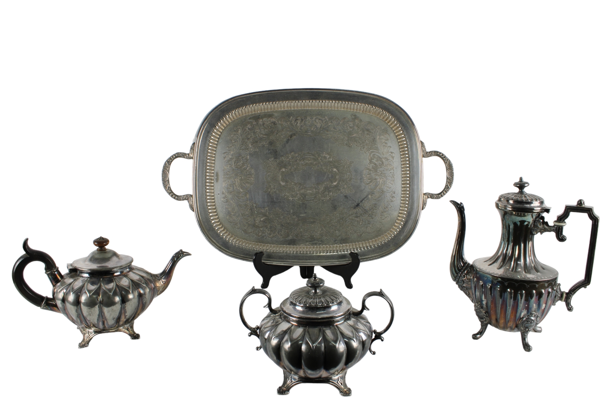 SERVIZIO DA TE teiera,lattiera,zuccheriera e vassoio in sheffield primi '900 Inghilterra misure varie