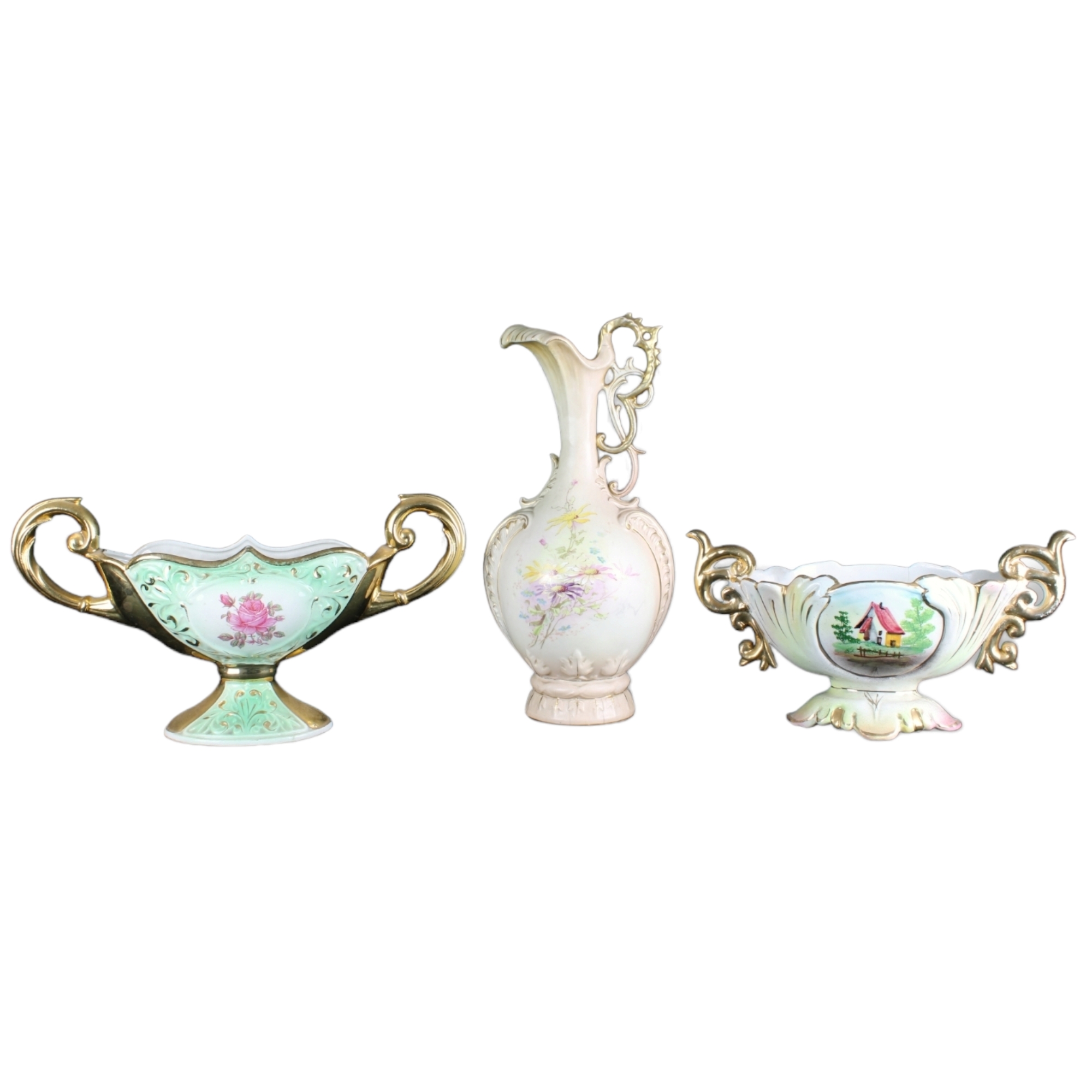 LOTTO DI 3 OGGETTI IN CERAMICA DI CUI: 1ANFORA E 2NAVETTE decorate da paesaggio XX secolo varie manifatture e misure