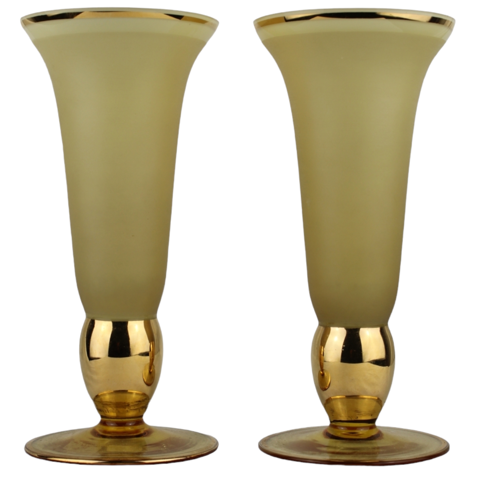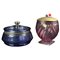LOTTO DI 4 OGGETTI 2 vasetti in opaline gialla, 2 scatole porta bonbon in vetro con coperchio misure varie