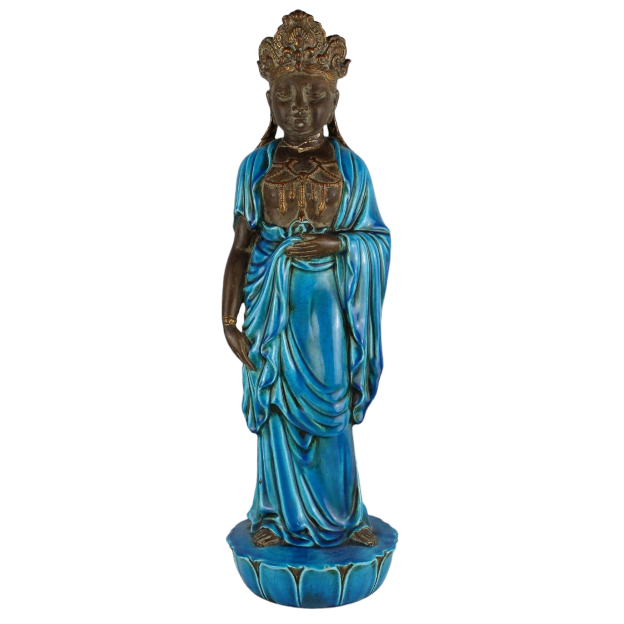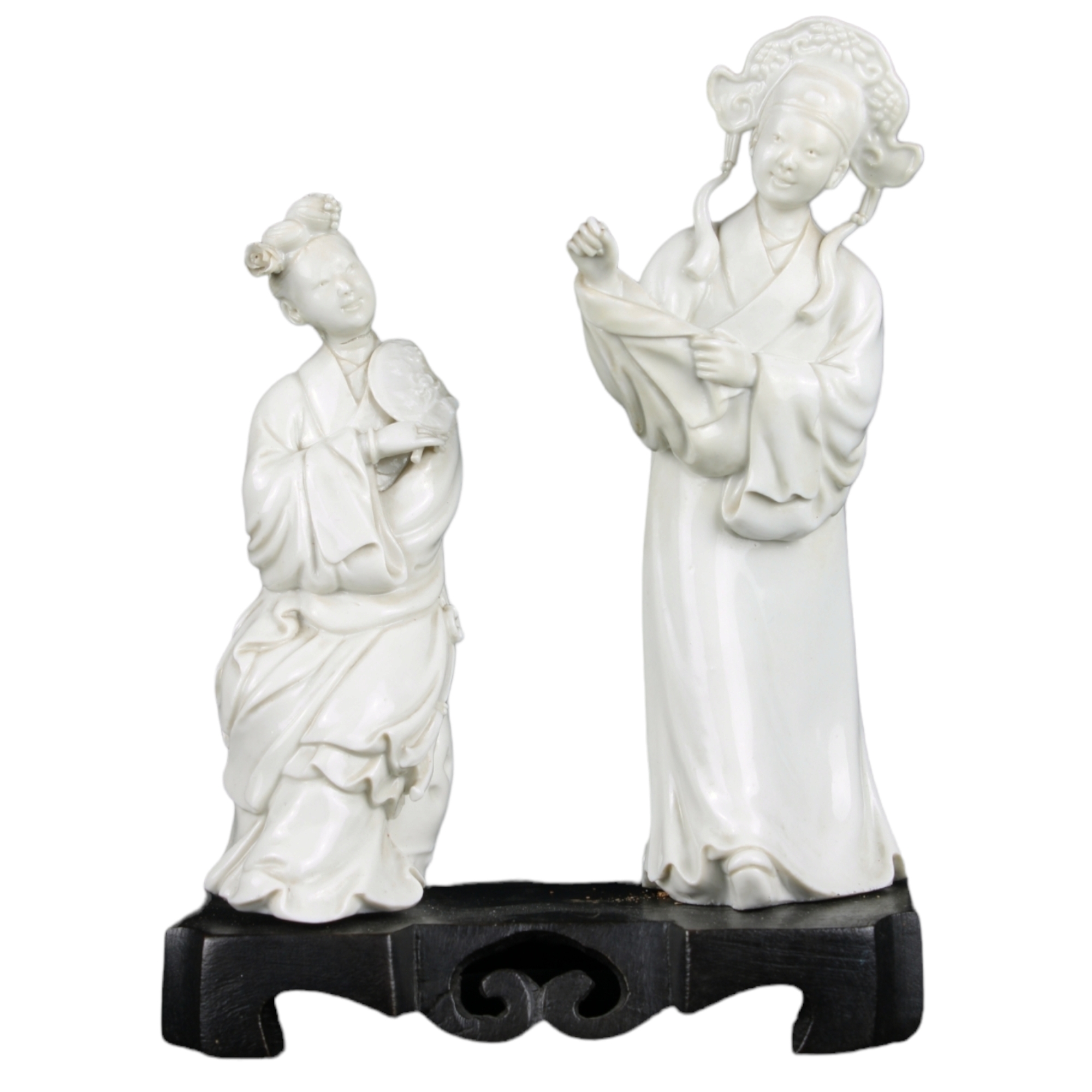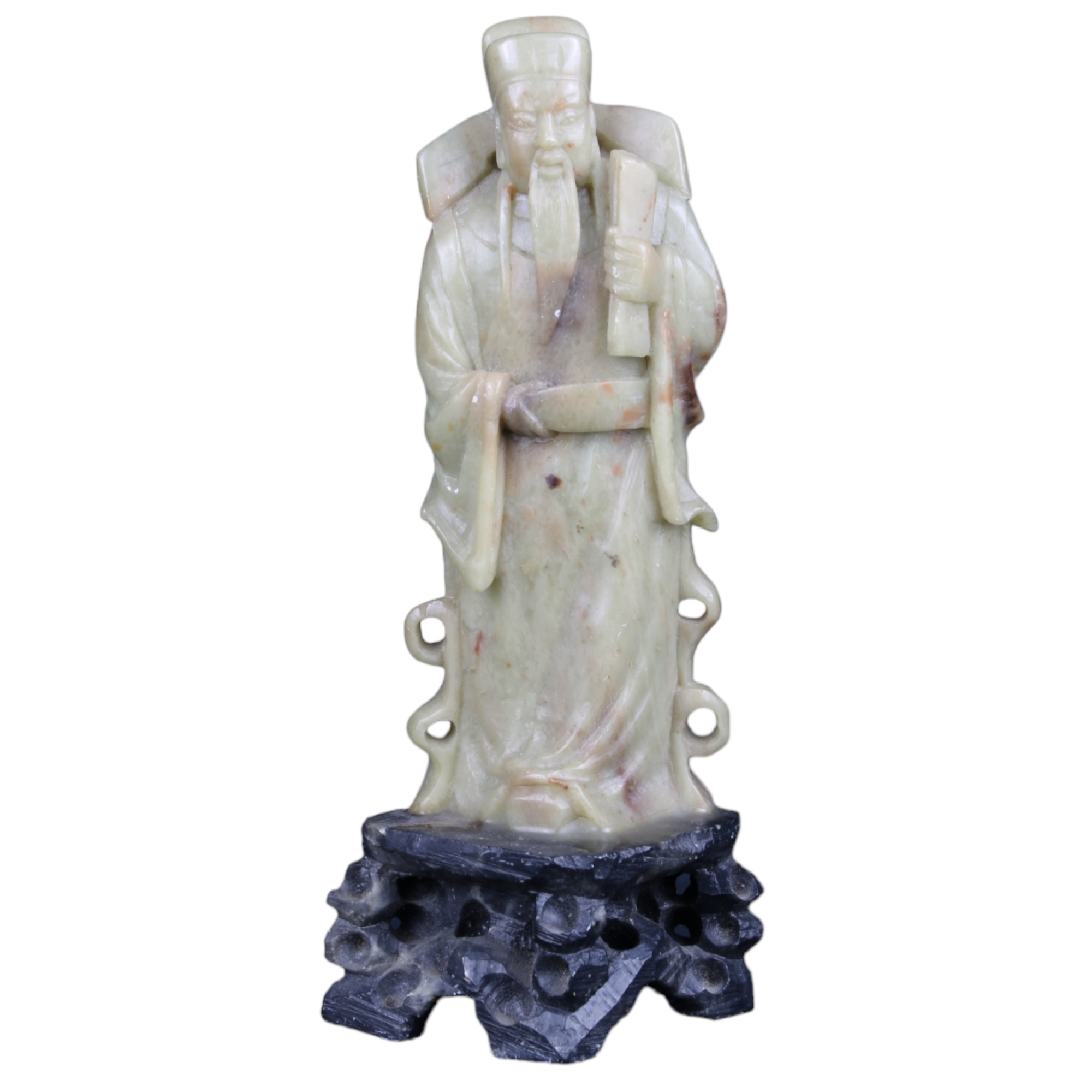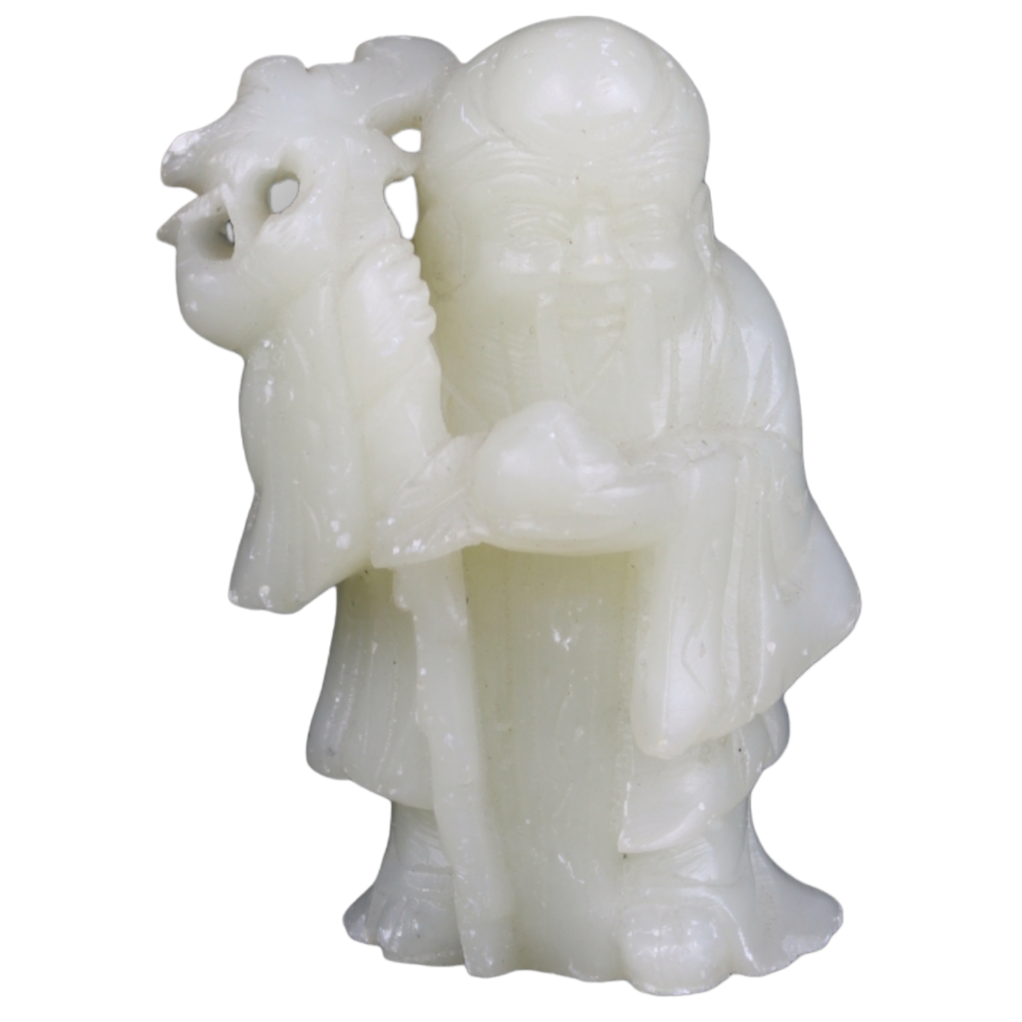 4 STATUE ORIENTALI di diversa forma e materiale h cm 62/ h cm 20 / h cm 16 XX secolo h cm 15 / h cm 7 Rotture ed incollaggi