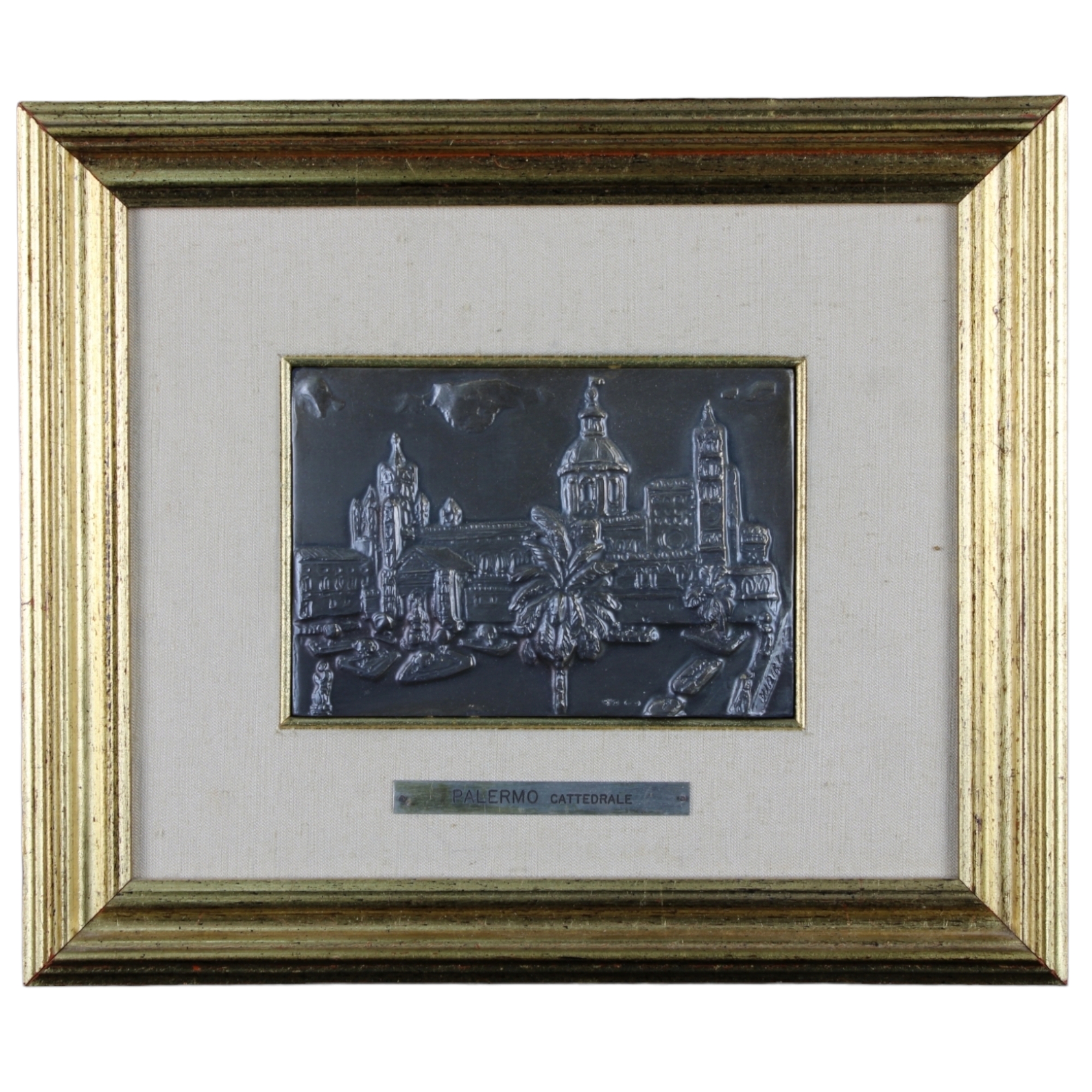 LOTTO DI DUE QUADRI Raff La Cattedrale di Palermo Oreficeria Cesare Borgia 1979 Autore Virgi' 1 Quadro su lamina Raff Ponte dell'Ammiraglio Palermo. XX secolo . h cm 10,5 x 15 / h cm 14 x 21