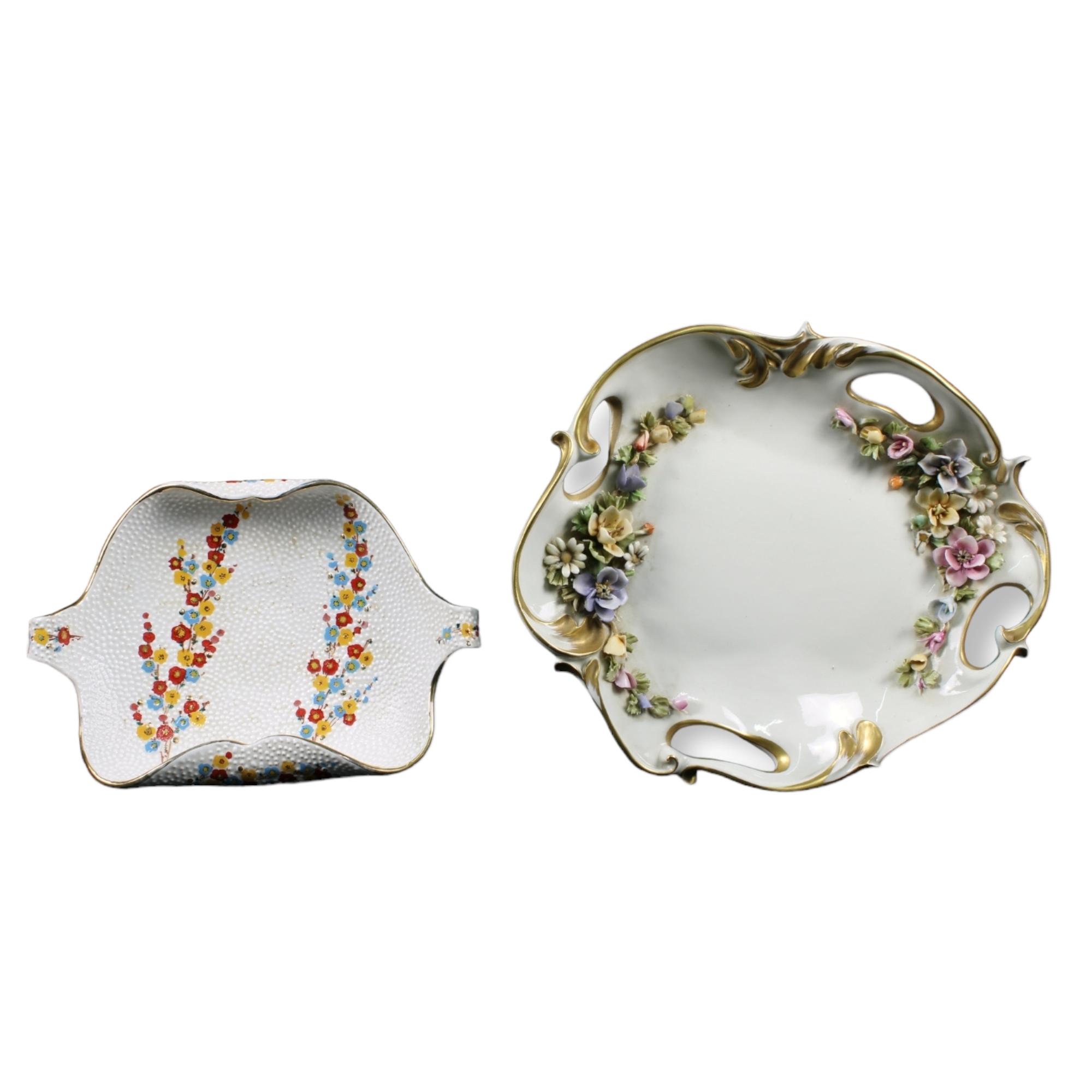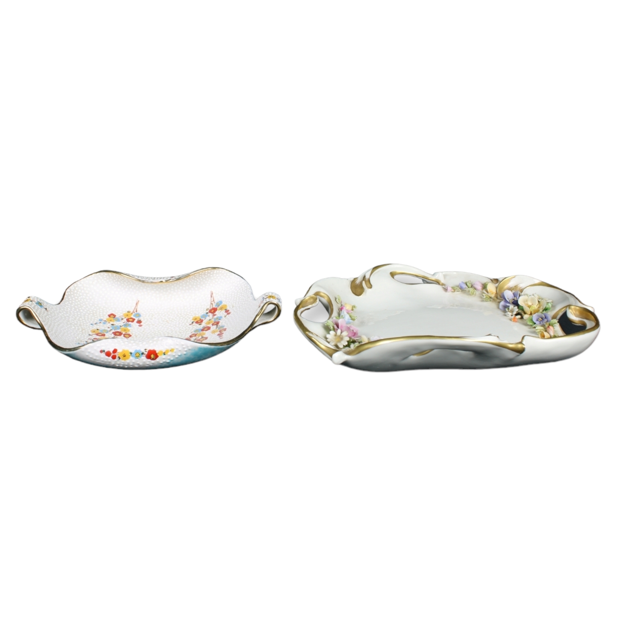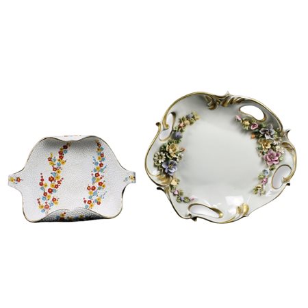 LOTTO DI 2 CENTROTAVOLA DI CUI: 1 DERUTA ED 1 IN PORCELLANA CAPODIMONTE cm Ø 34 / cm Ø 27