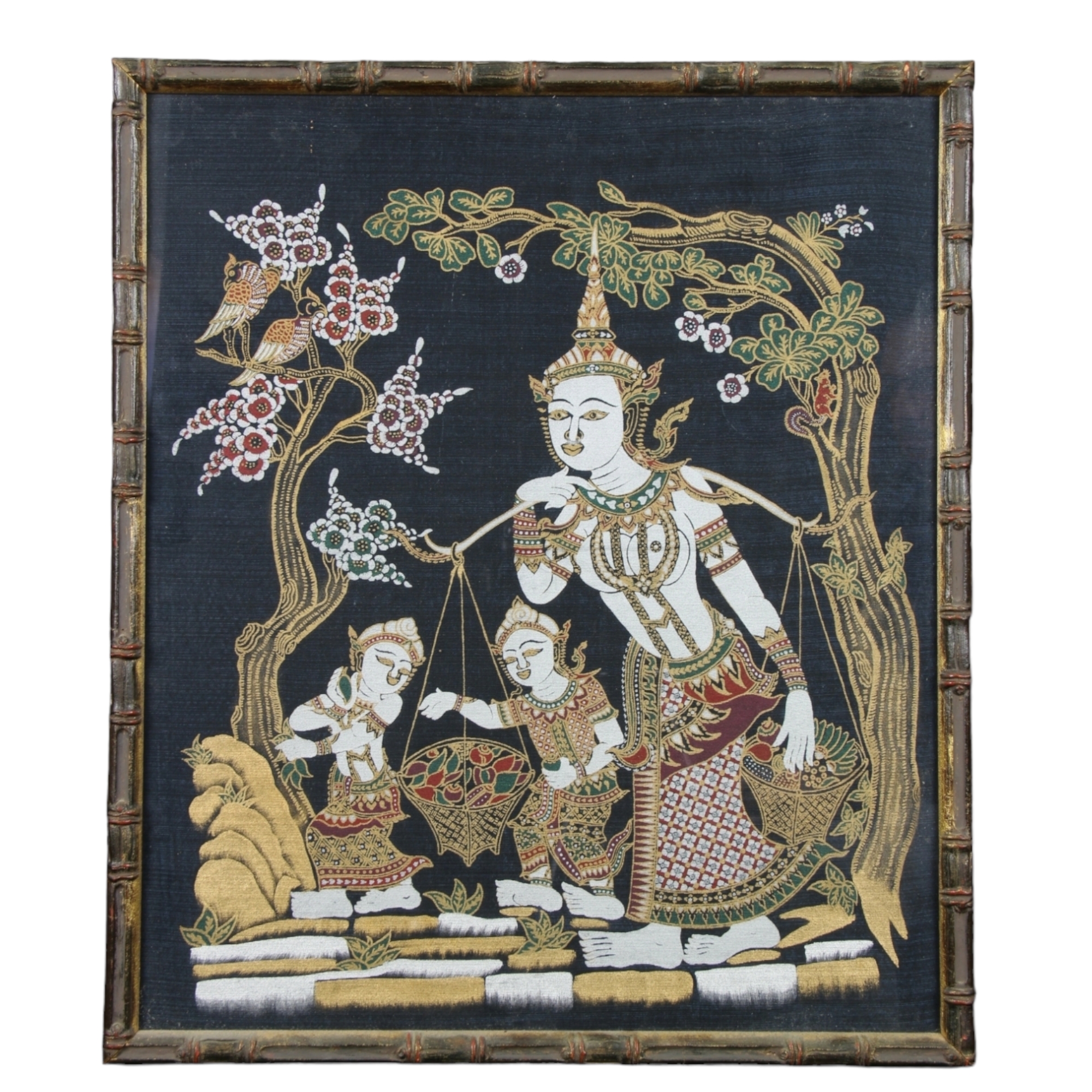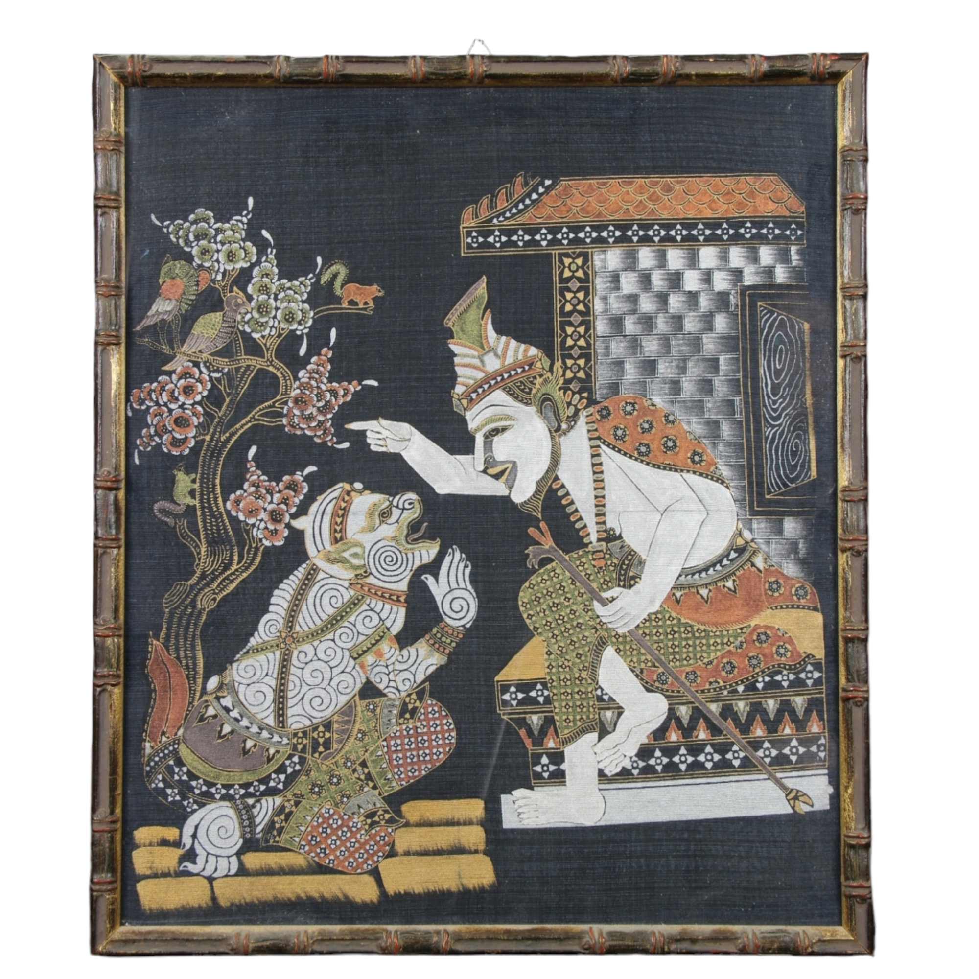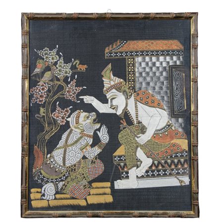 2 QUADRI con soggetti orientali vecchia fattura Thailandese h cm 53 x 46