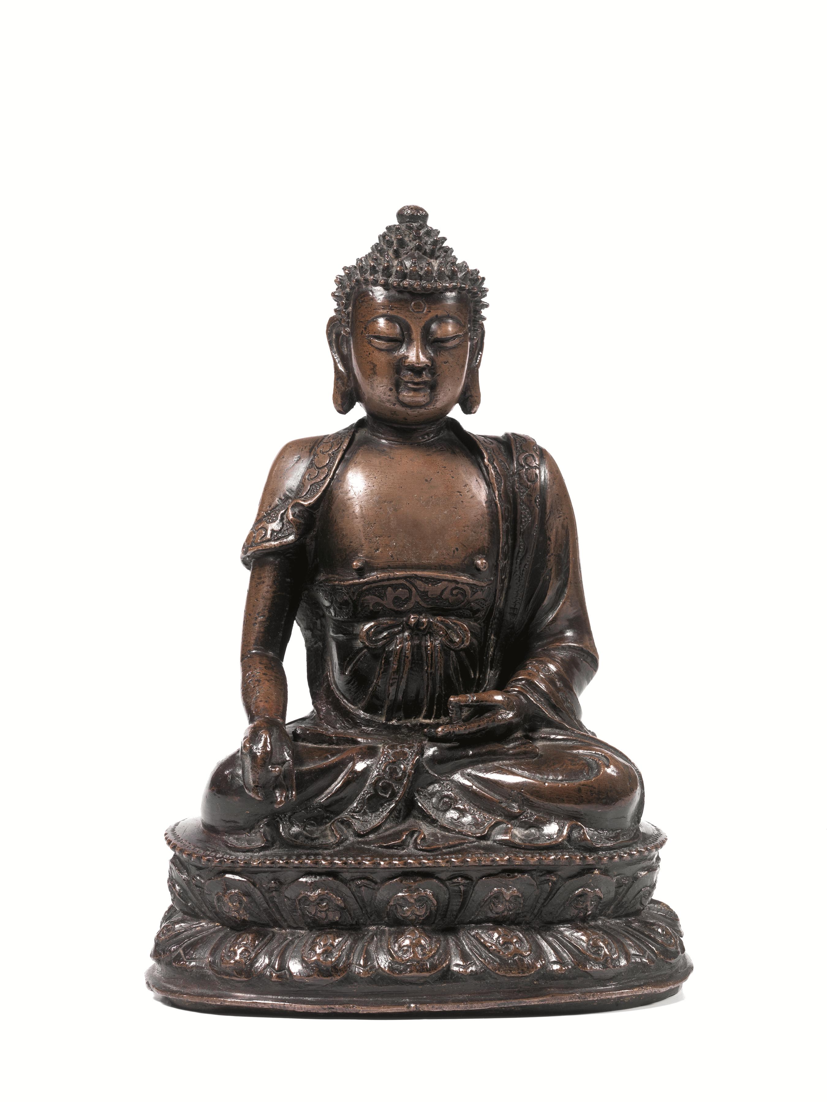 A Chinese bronze figure of the seated Buddha. 18th/19th c.