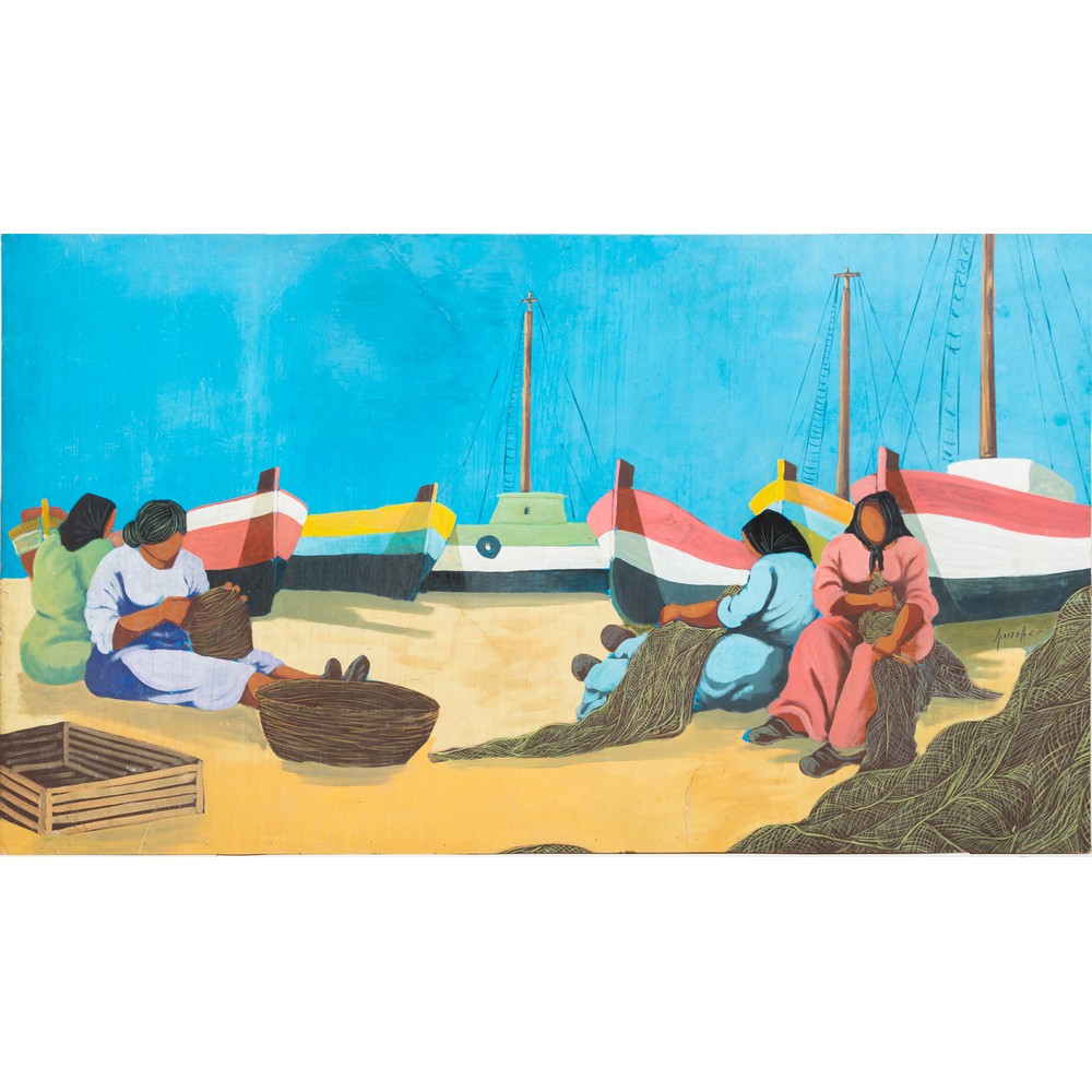 GIUSEPPE UZZACO Barche a secco Olio su masonite
