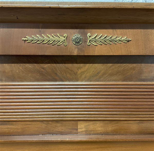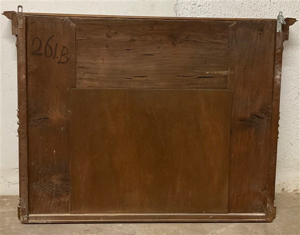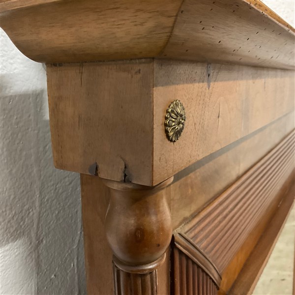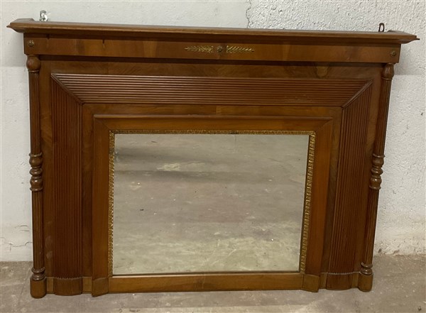 Caminiera in legno intagliato con montanti a mezza colonna scanalata e dorata, applicazioni tornite in metallo dorato (cm 134x99) (difetti)