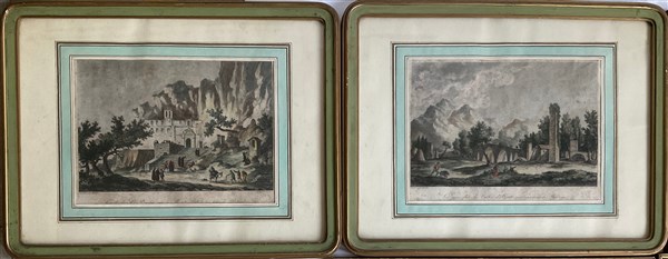 Lotto composto da cinque incisioni diverse su carta raffiguranti paesaggi, di c