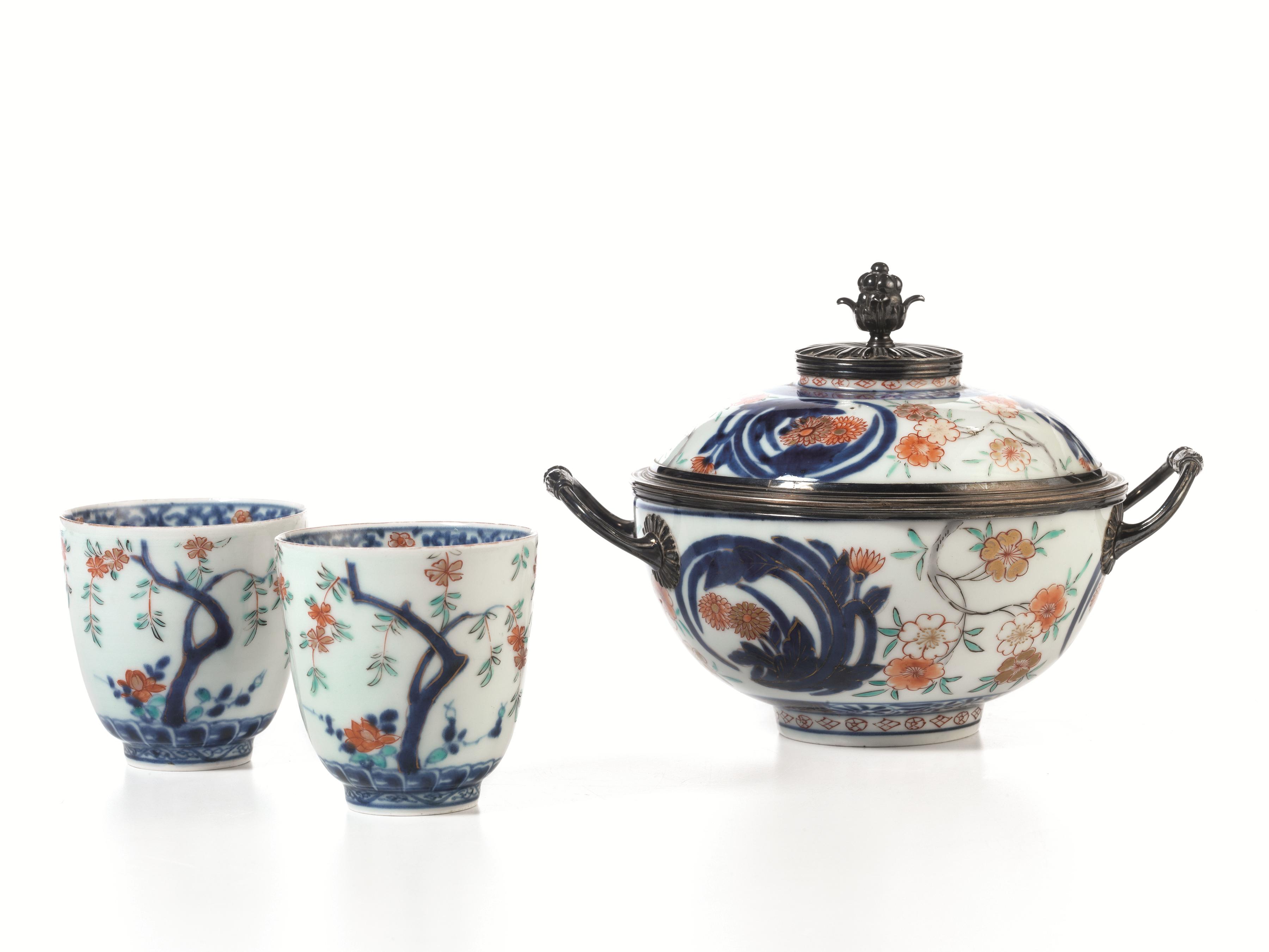 Ciotola con coperchio Giappone sec. XIX, in porcellana imari, montata in argento europeo, diam. cm 15,5