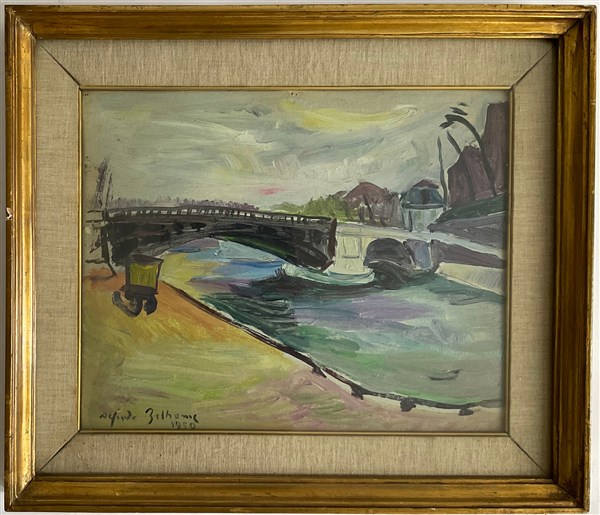 Alfredo Beltrame "Pont Sully, Paris" 1950, olio su cartone (cm 33x41) Firmato e