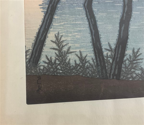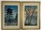 Due stampe giapponesi raffiguranti "Torre nella pioggia" e "Veduta di tempio",