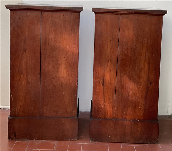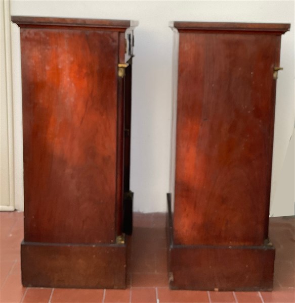Coppia di comodini impero in legno tinto ad un'anta ed un cassetto sul fronte c