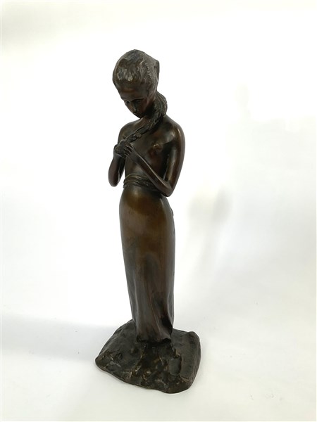 Ignoto del XIX Secolo, "La treccina", scultura in bronzo (h. cm 45) Reca iscriz