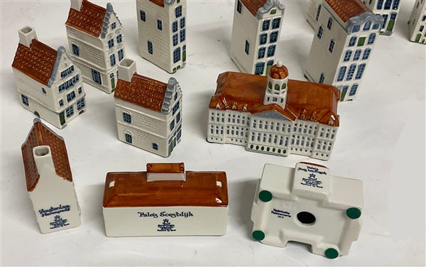 Manifattura Royal Goedewaagen Poly Delft Holland. Serie di trentadue modelli di edifici olandesi in ceramica policroma (h. max cm 12) (difetti e rotture)