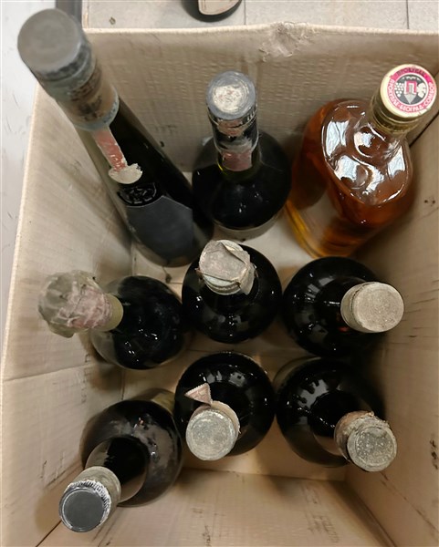 Cartone contenente liquori diversi (difetti alle bottiglie, alle etichette e al