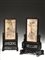 Due paraventi da tavolo, Cina dinastia Qing (1644-1911), in avorio decorato a figure, uno con iscrizione, montati su basi differenti in legno intagliato, cm 20x10 le placche, alt. cm 16,5, danni su uno dei pannelli