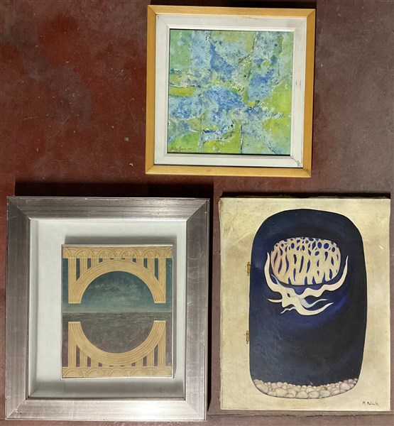 Lotto composto da tre tecniche miste, di cui due su tela e una su cartone, di soggetti e misure diverse (misura max cm 50x40) firmate, due in cornici