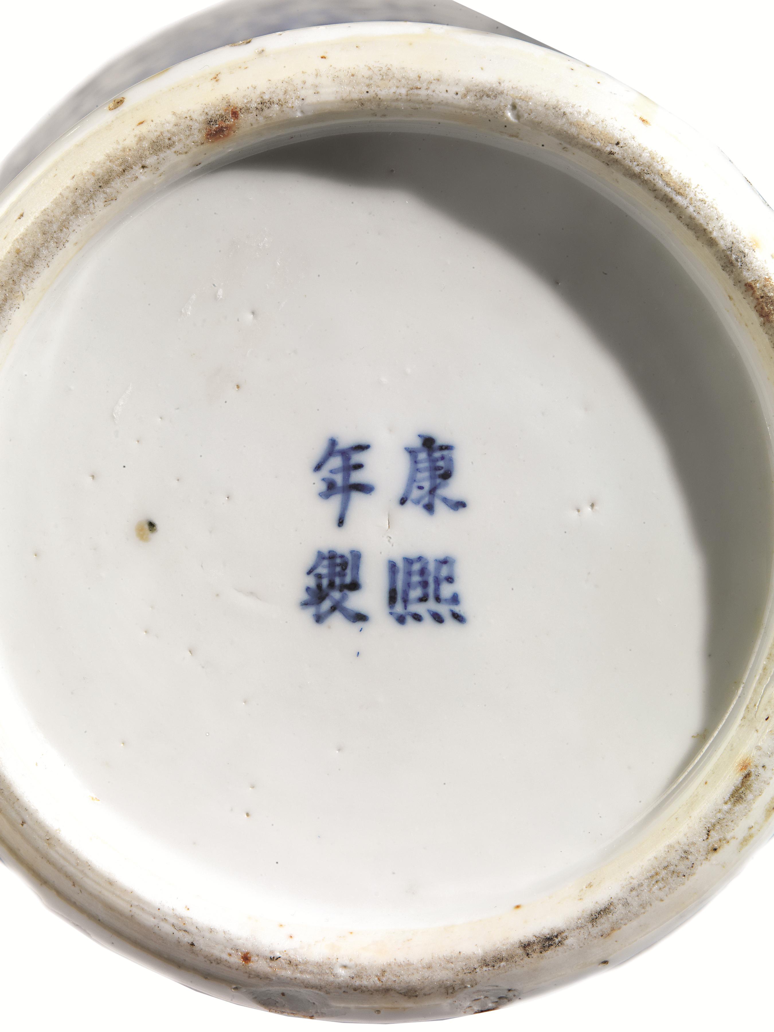 Vaso, Cina fine dinastia Qing, in porcellana bianca e blu, decorato con...