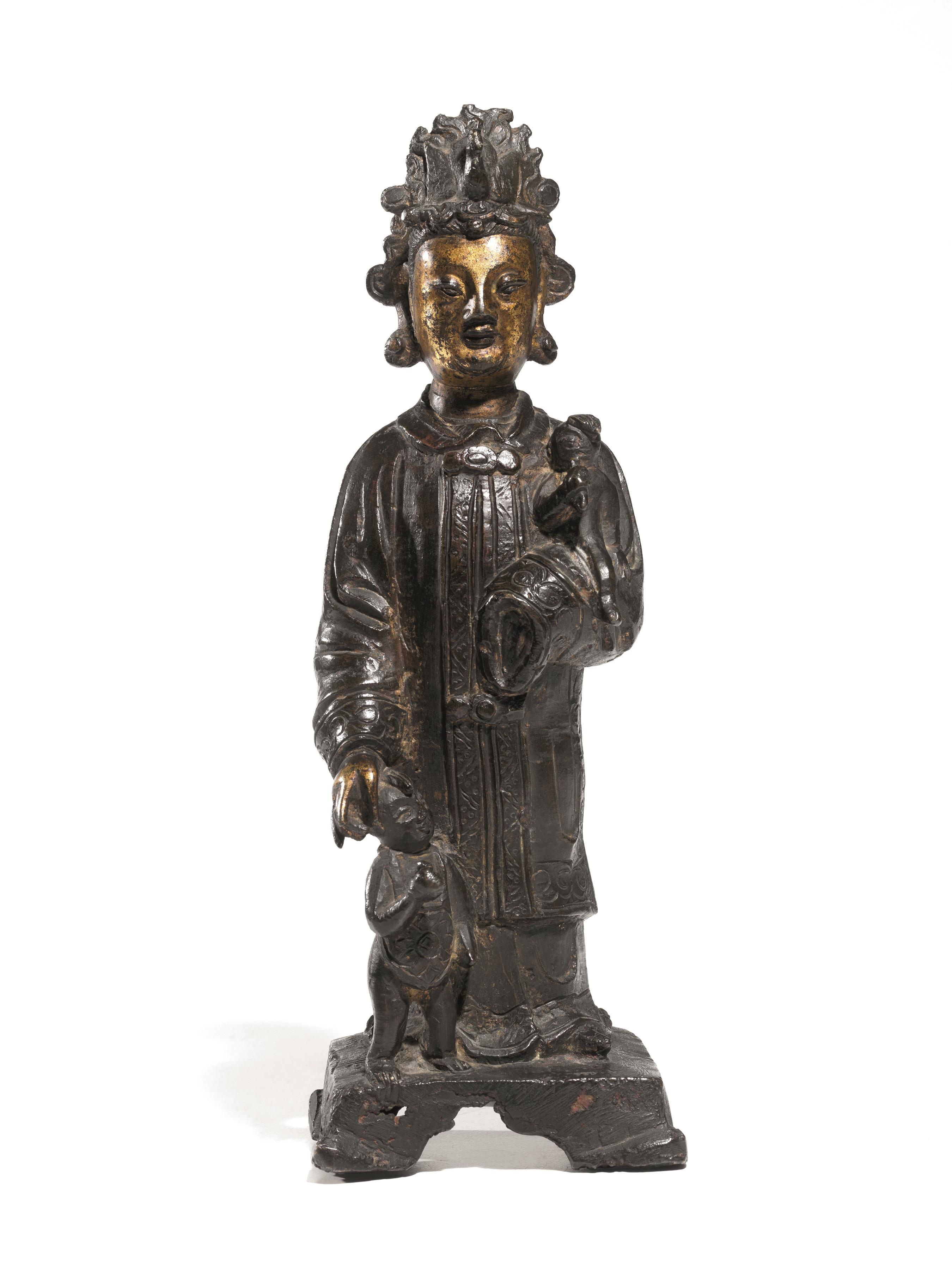 Lot 282 | Figura Cina, secolo XVII, in bronzo parzialmente dorato, raffigurante una...