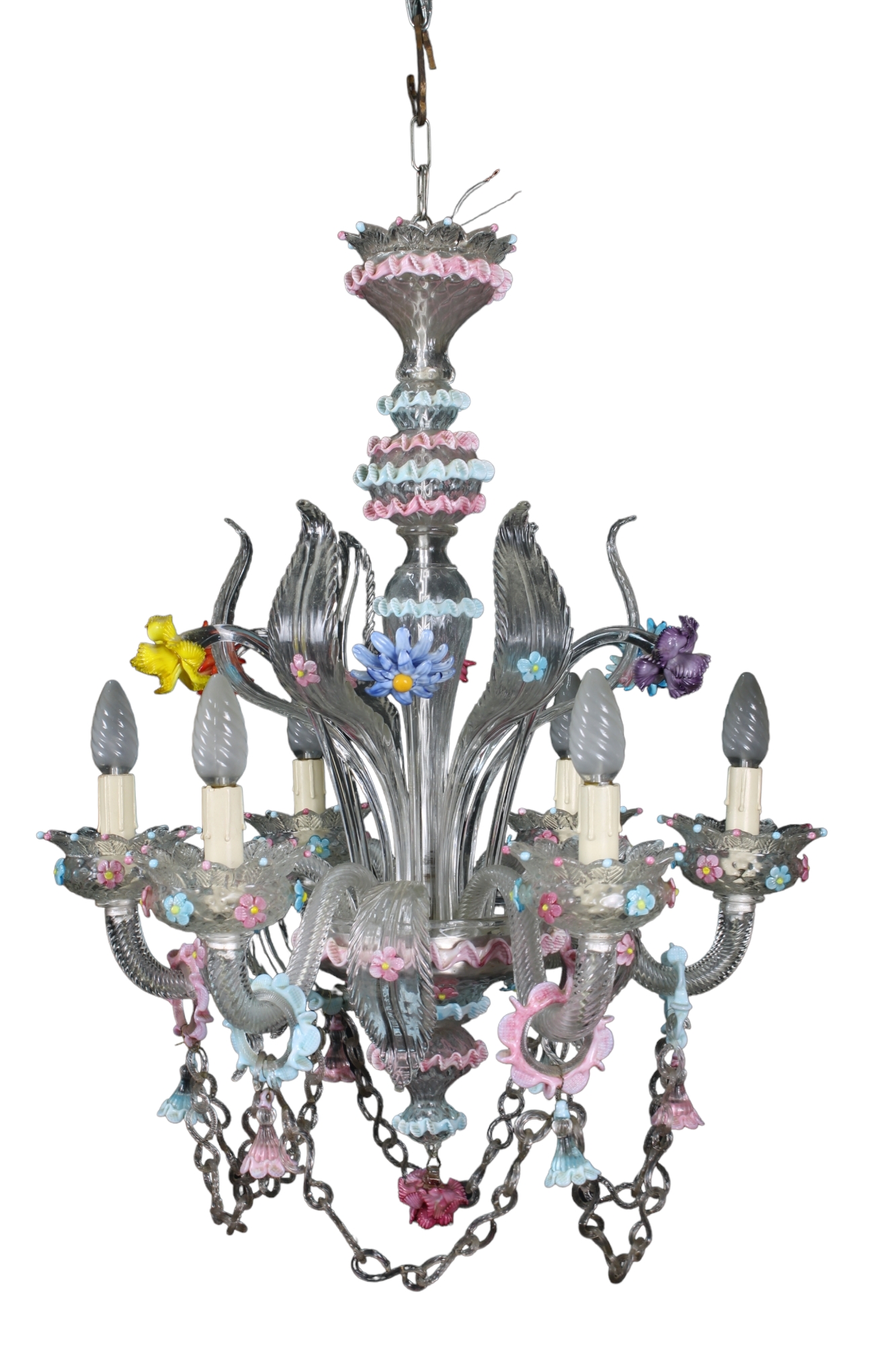 LAMPADARIO in vetro di Murano a 5 braccia Venezia XIX / XX secolo