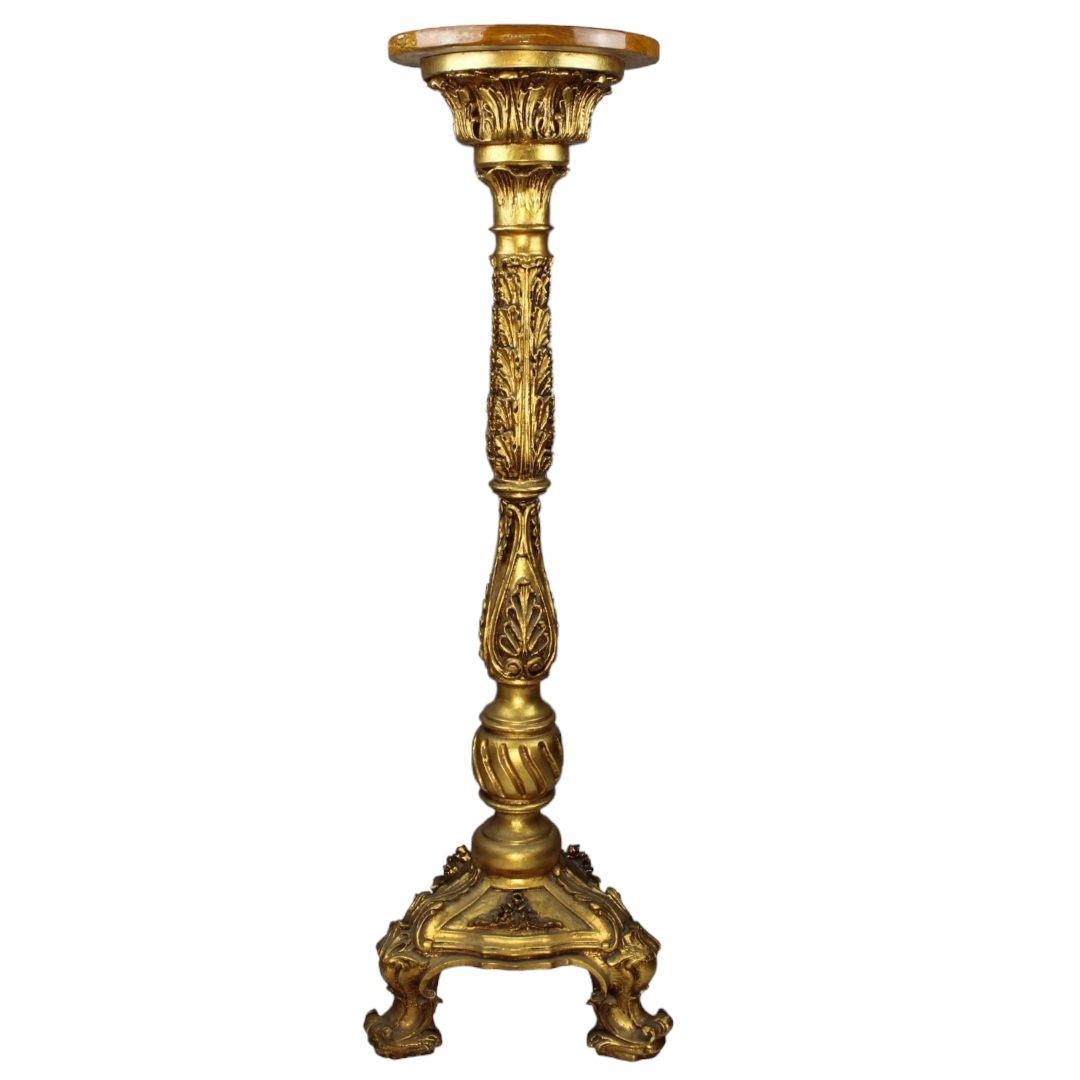 CANTONE in legno riccamente intagliato e dorato con piano in onice Sicilia fine XIX secolo h cm 119 x 35