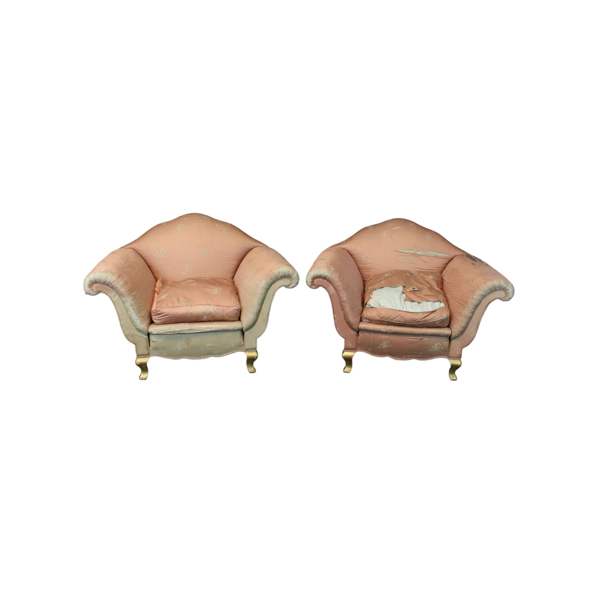 COPPIA DI GRANDI POLTRONE in legno interamente rivestite in tessuto con piedi in legno dorato Sicilia XVIII/ XIX secolo h cm 87 x 125 x 104