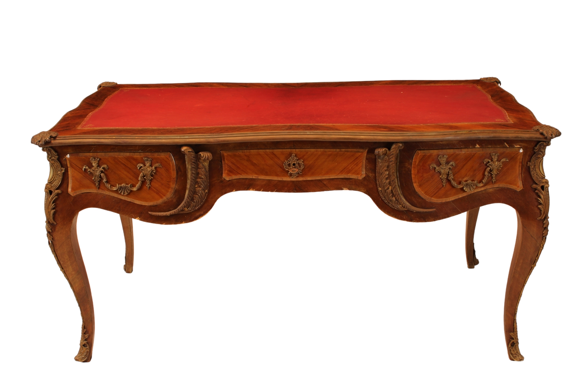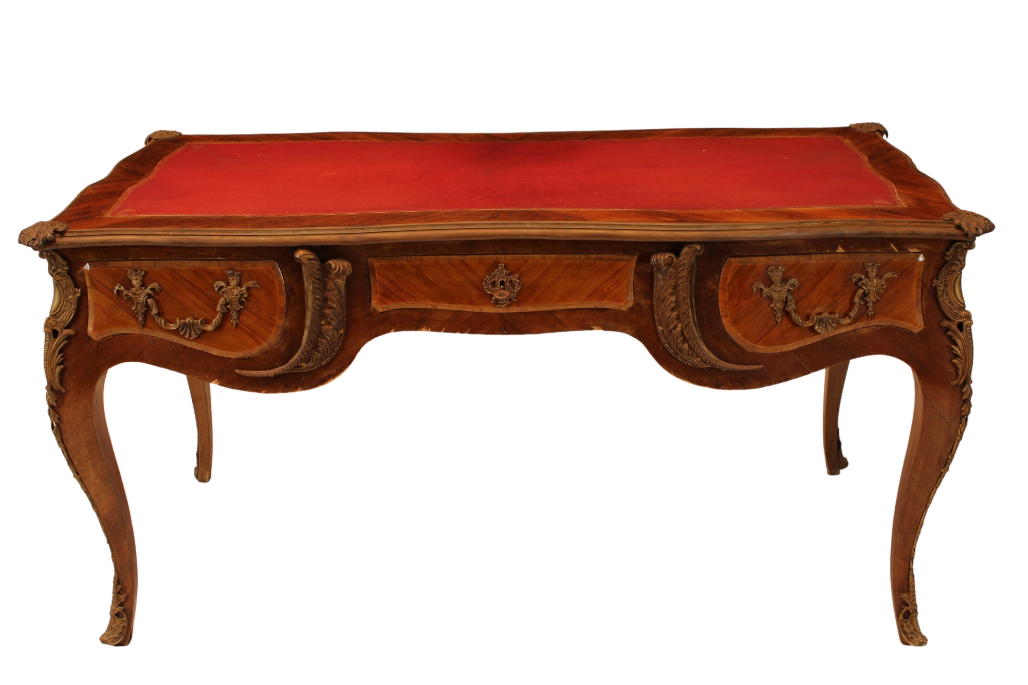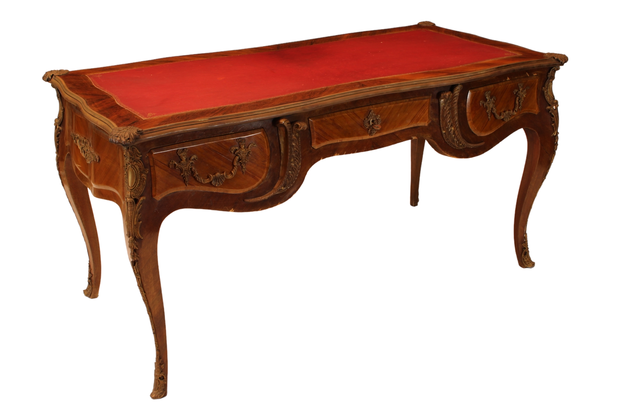 SCRIVANIA IN STILE LUIGI XV in legno di palissandro e applicazioni in bronzo e piano in pelle Francia XIX / XX secolo h cm 80 x 153 x 75