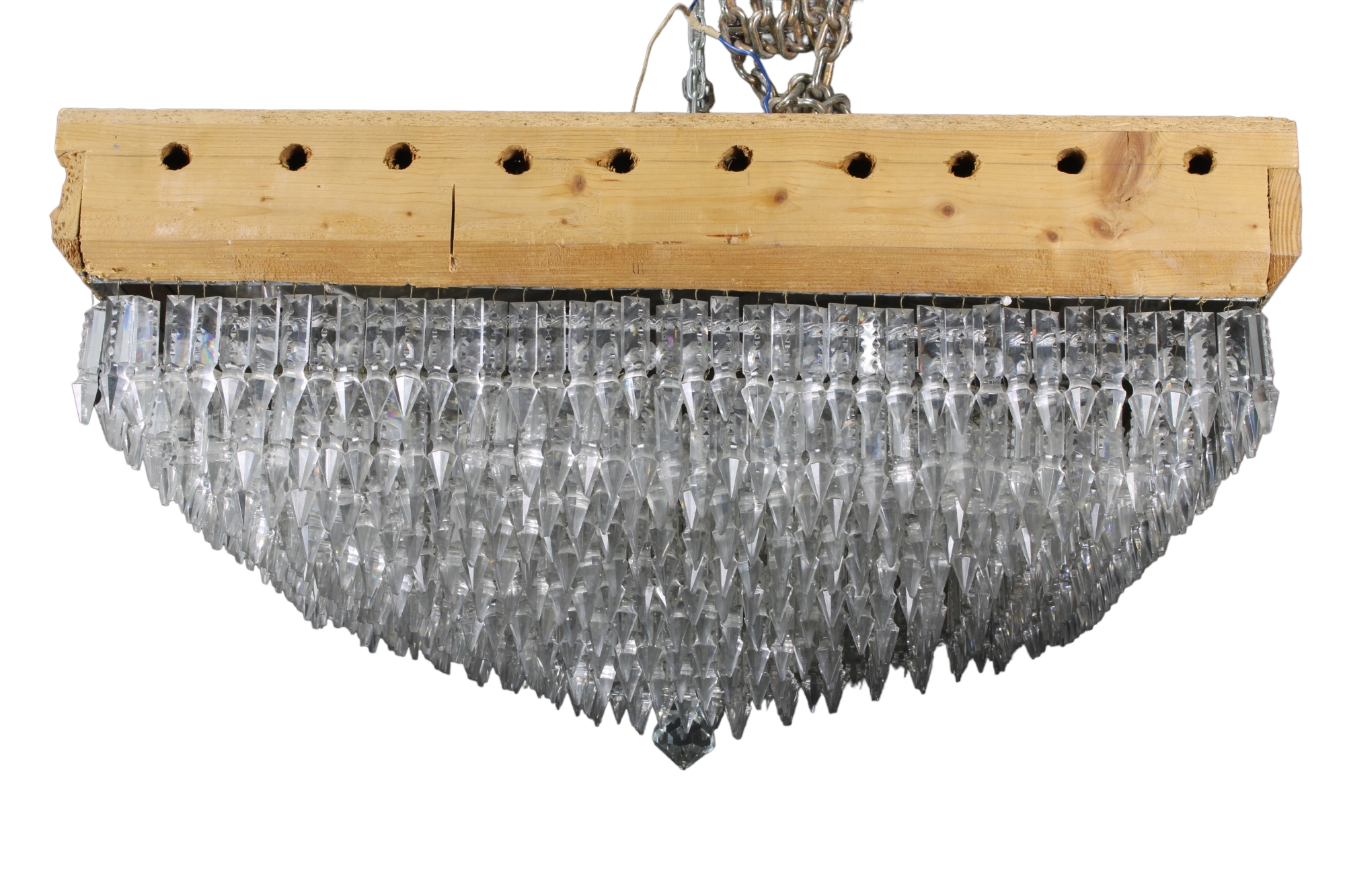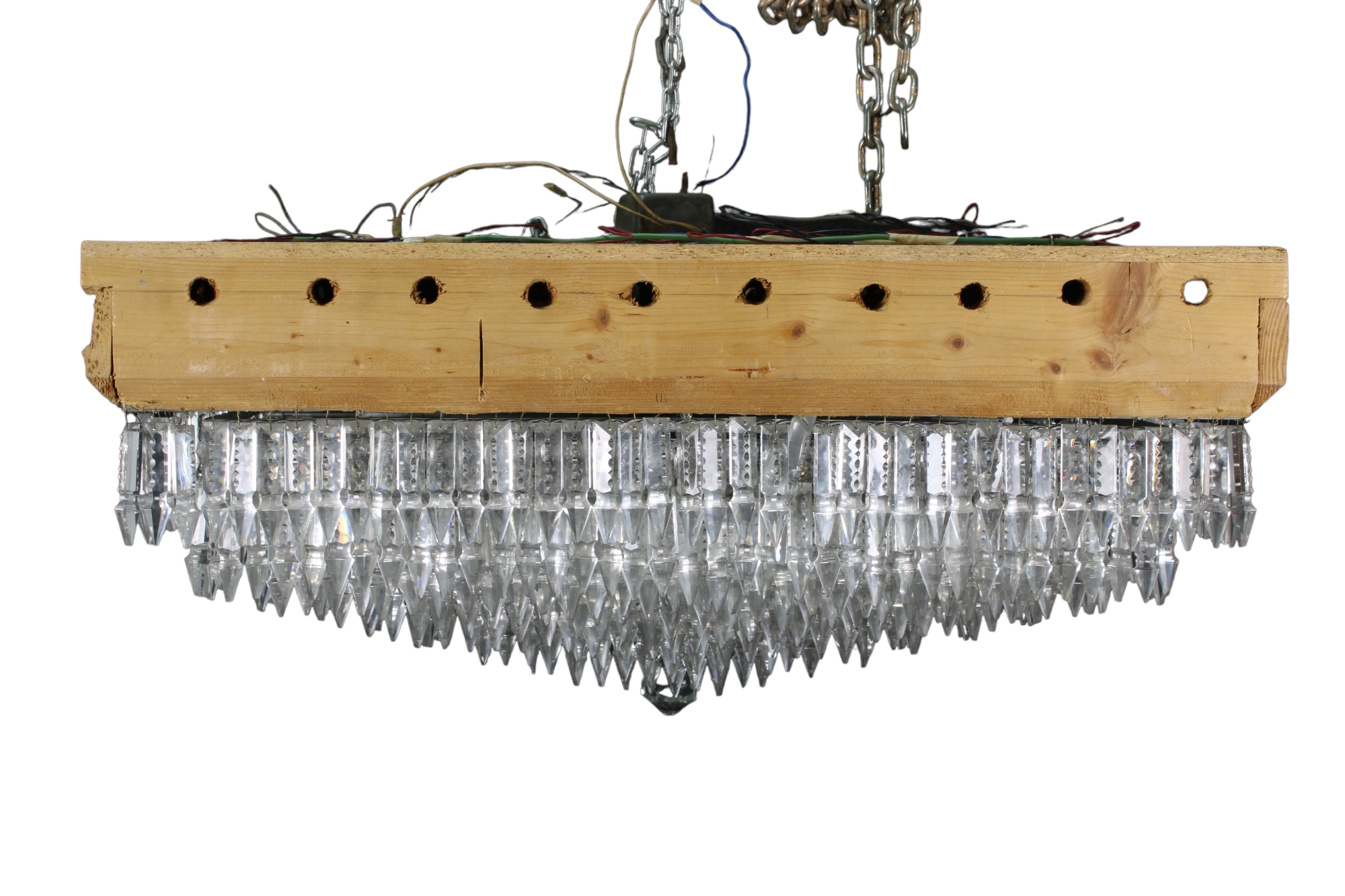 PLAFONIERA DA INCASSO struttura in metallo argentato e pendenti in cristallo manifattura Italia 1920 circa h cm 35 x 76 x 76