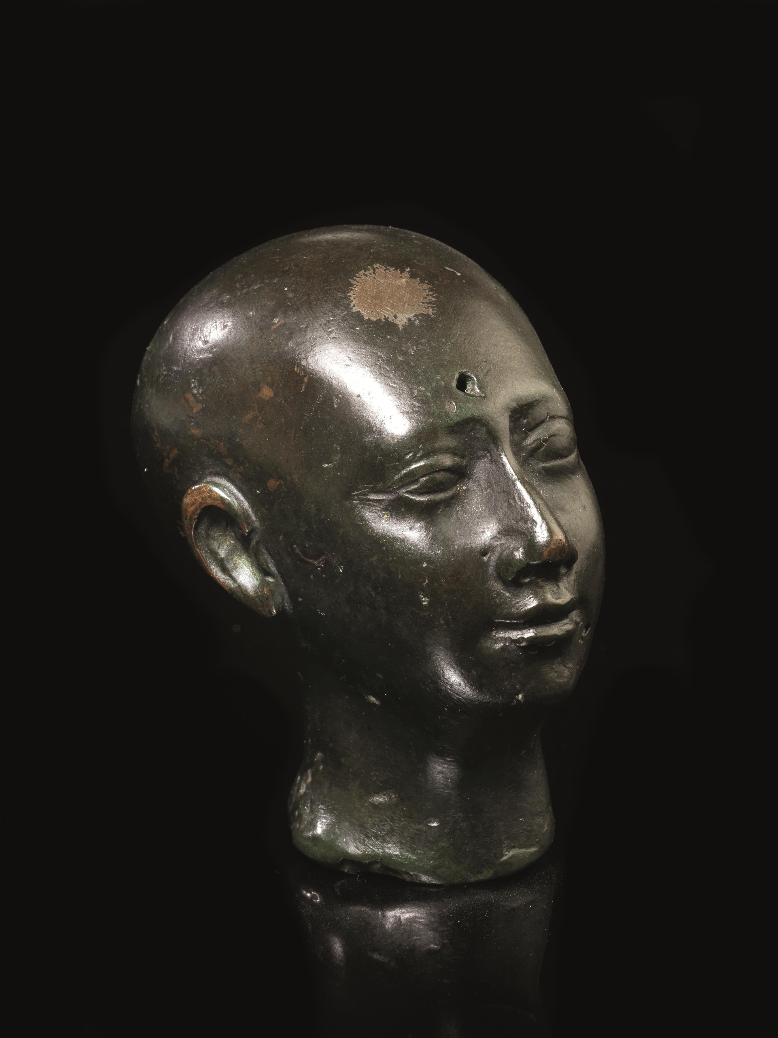 Lot 7 | Testa di sacerdote Materia e tecnica: bronzo fuso e cesellatoTesta di giovane...