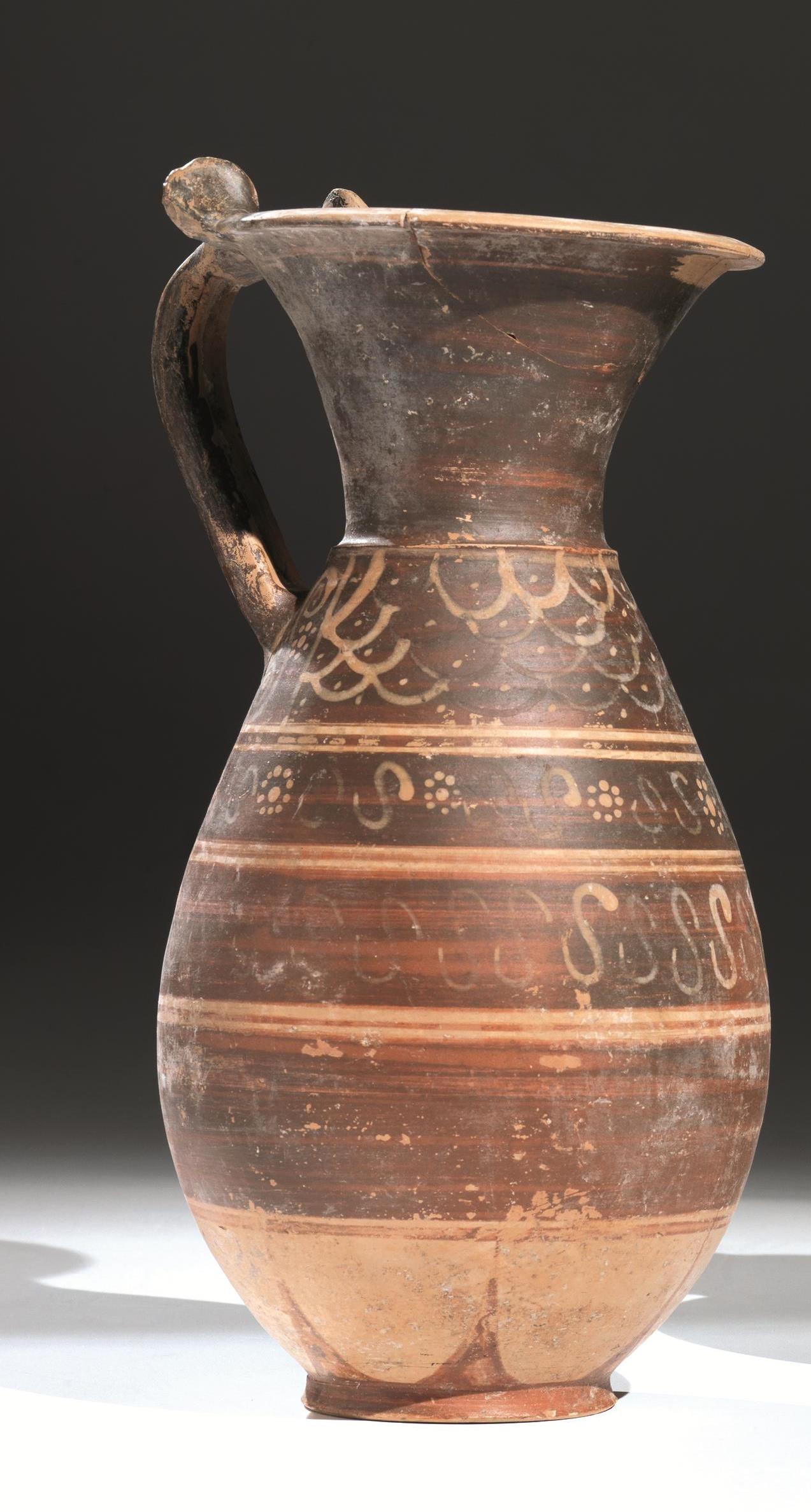 Lot 24 | Grande olpe a rotelle etrusco corinziaMateria e tecnica: argilla figulina...