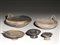 Lotto di due ciotole coperchio e tre piattelli Materia e tecnica: impasto...