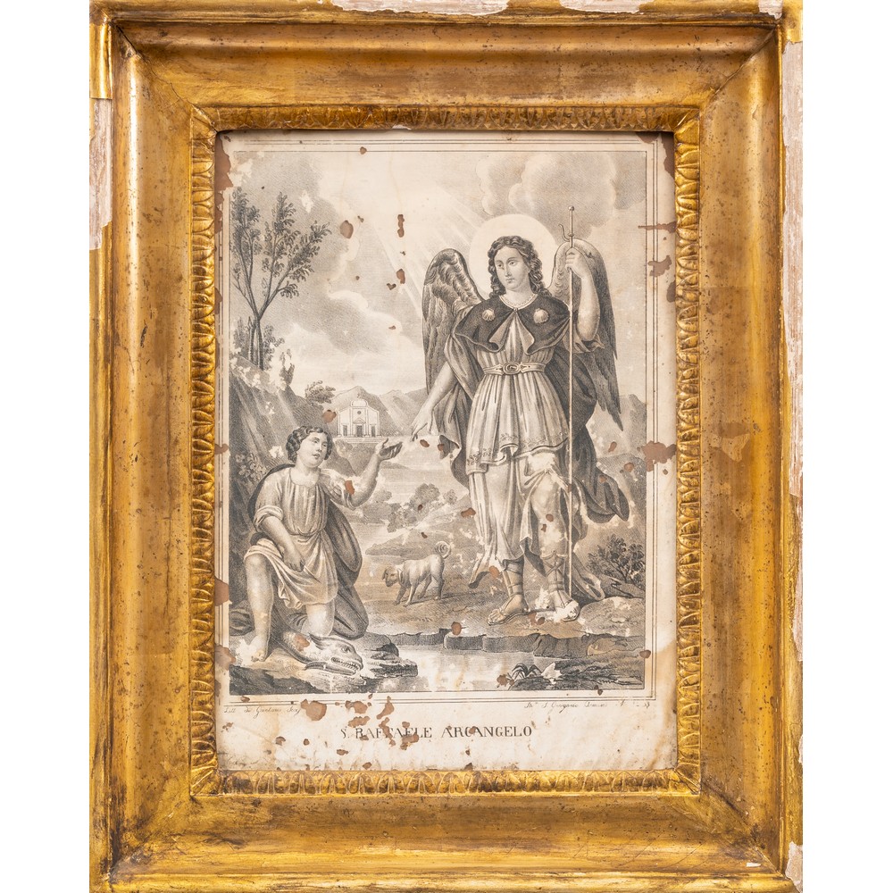 in legno dorato ad argento a mecca con incisione raffigurante "San Raffaele Arcangelo" (usure).