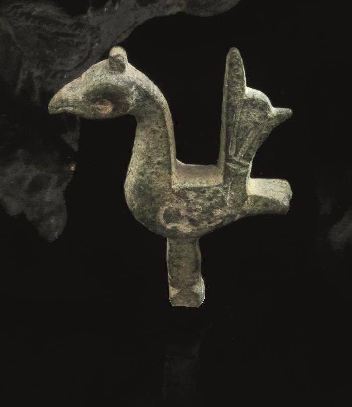 Divinità e gallo in bronzo