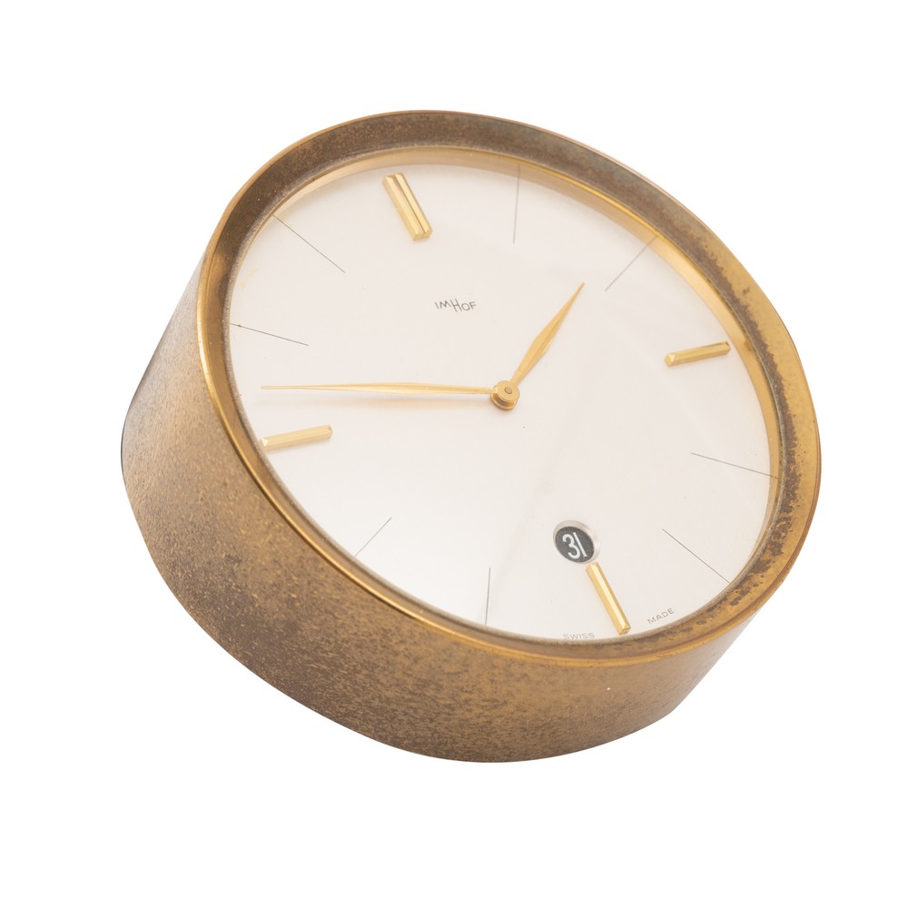 OROLOGIO/SVEGLIA svizzera da tavolo in ottone.