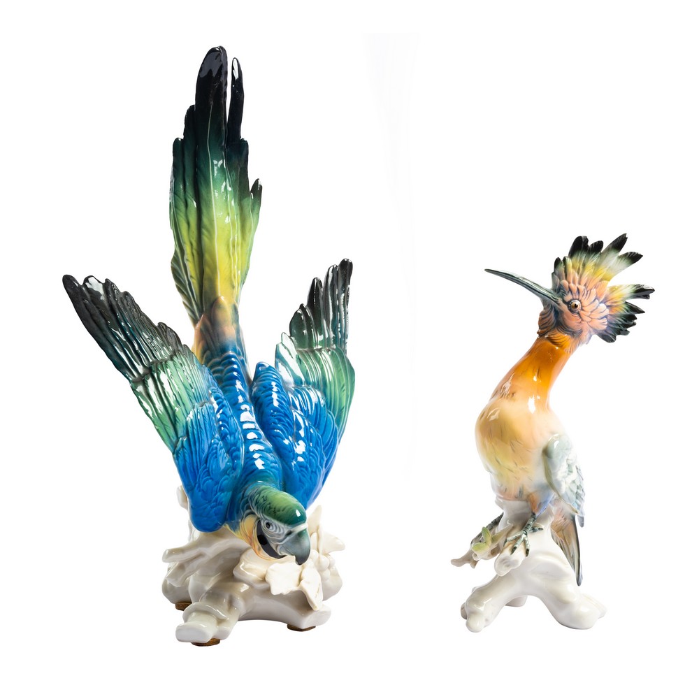 DUE SCULTURE in porcellana raffiguranti volatili (piccola rottura).