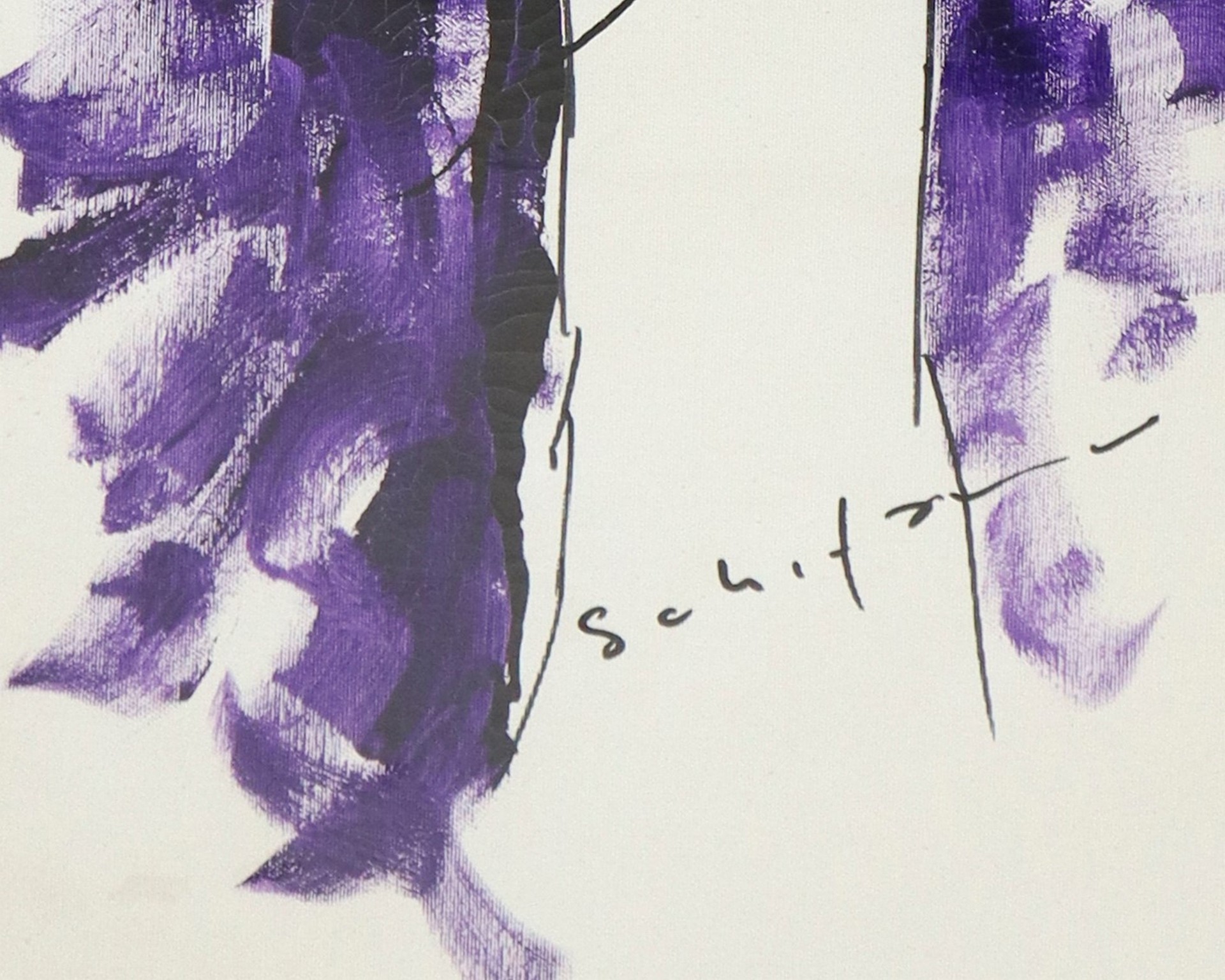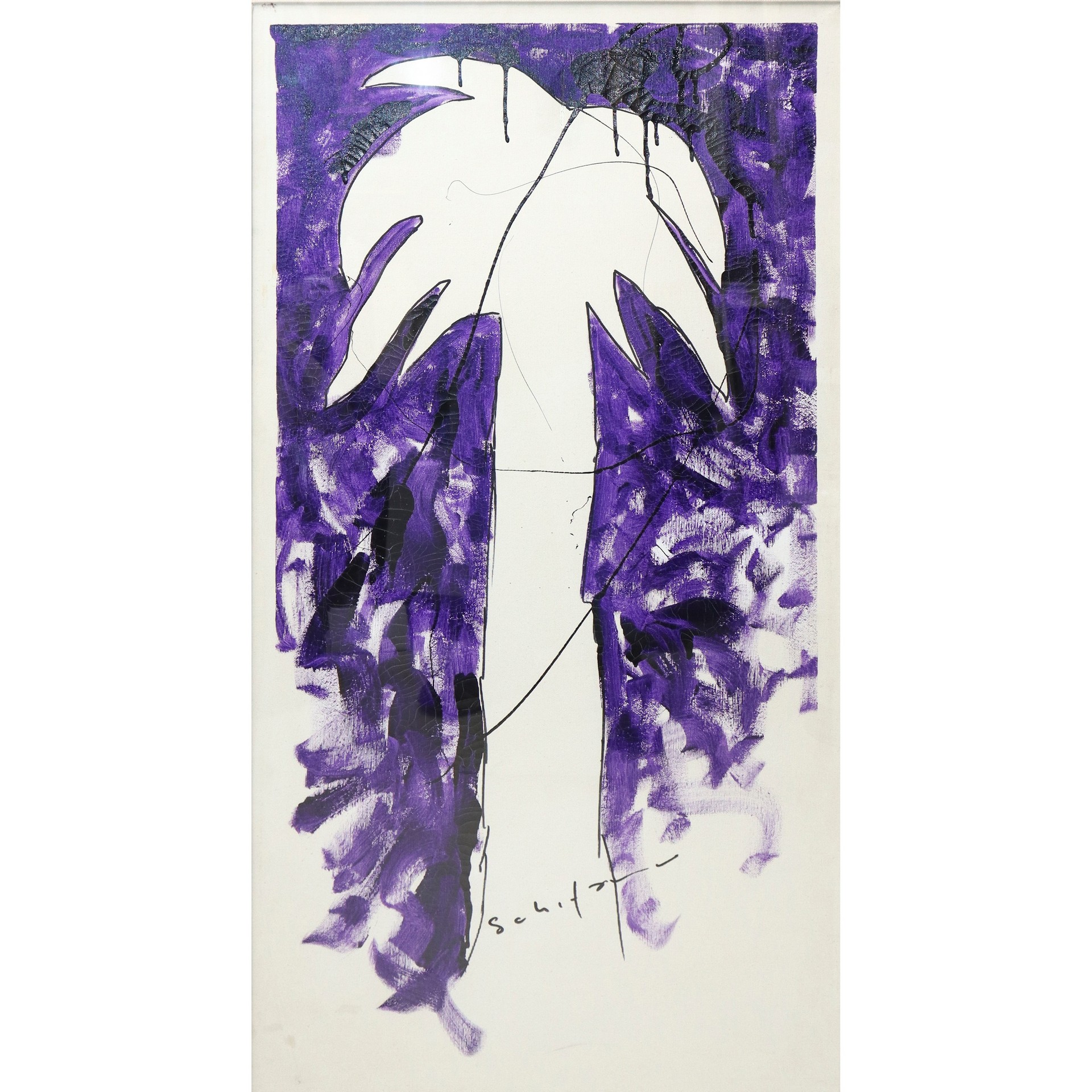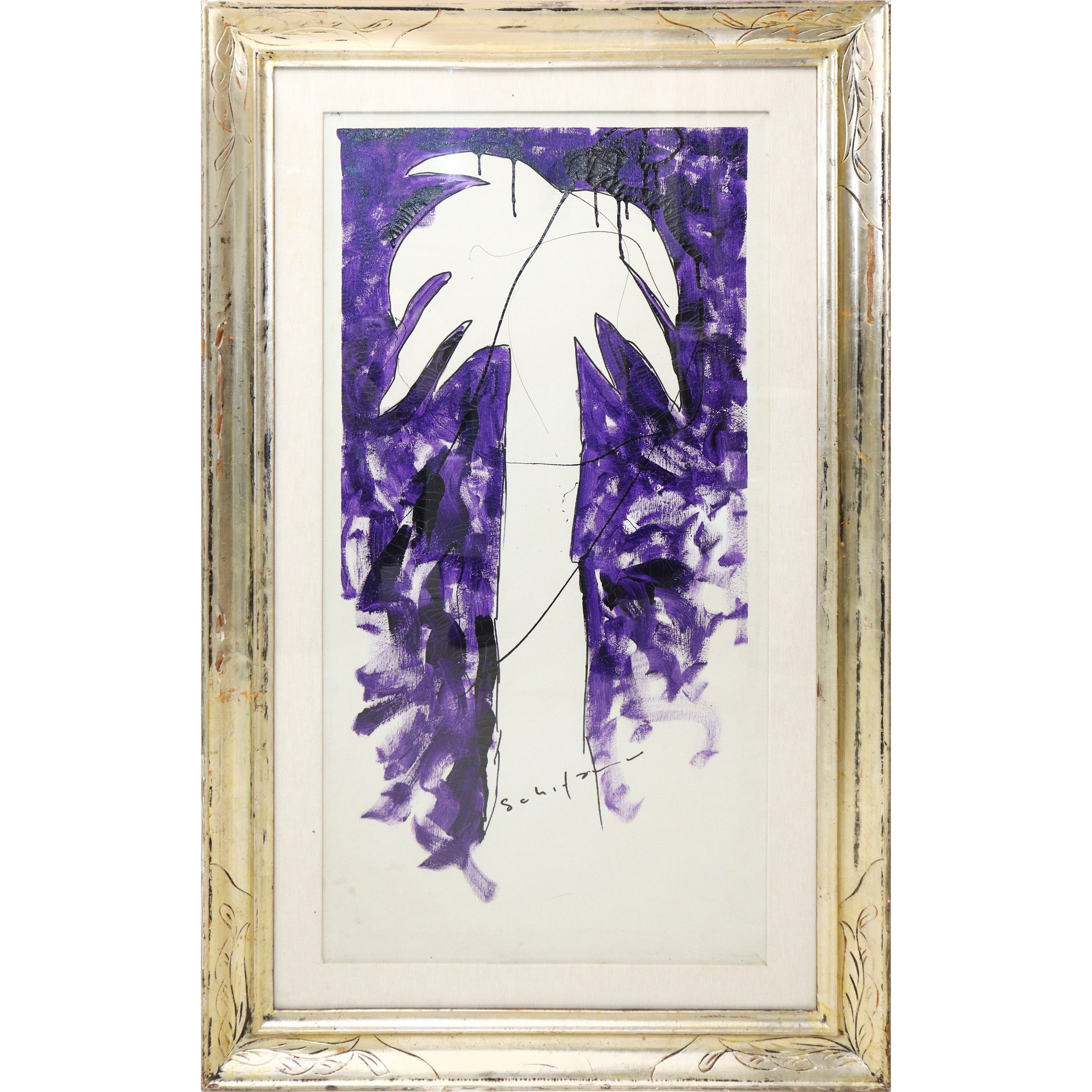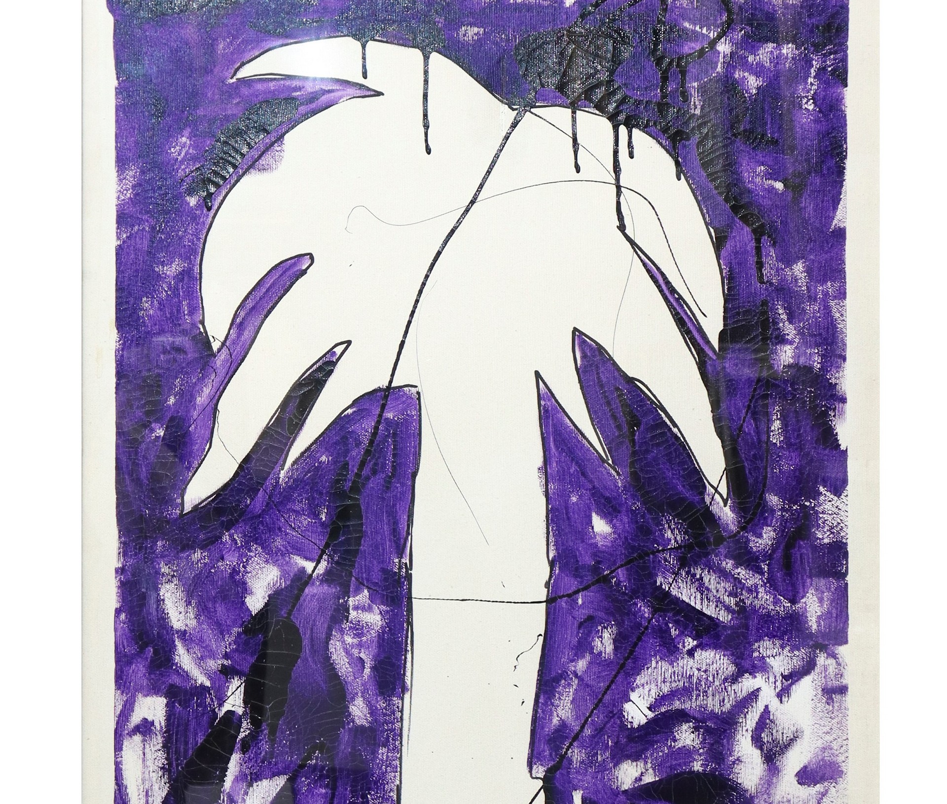 Mario Schifano (Homs Libia 20/09/1934-Roma 26/01/1998) - Una palma Cm 100 x 50 in cornice 124 x 74 Acrilico su tela Firmato in basso al centro e sul retro timbro della Galleria Parametro, Roma con relativo numero di archivio interno. CP/47/91