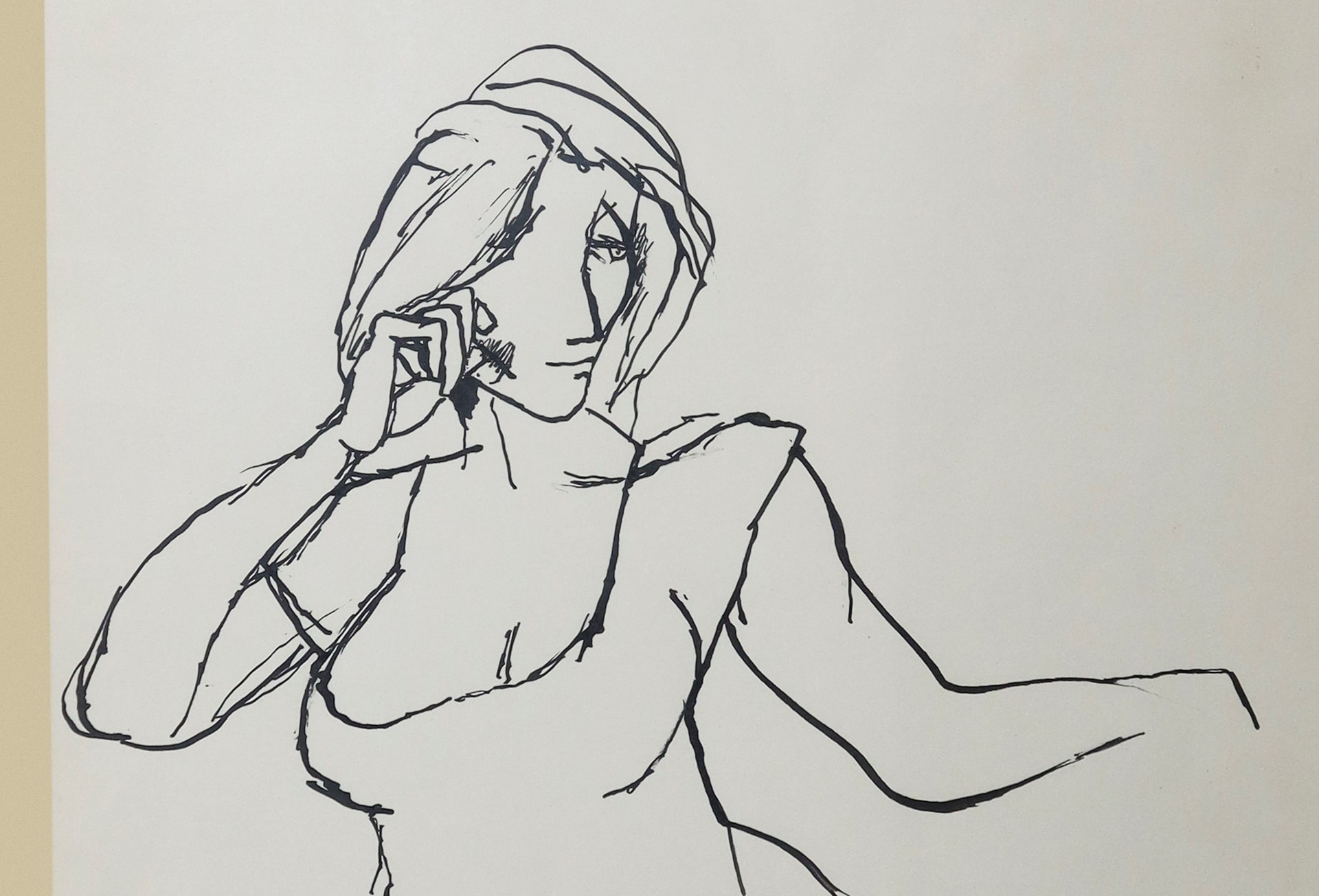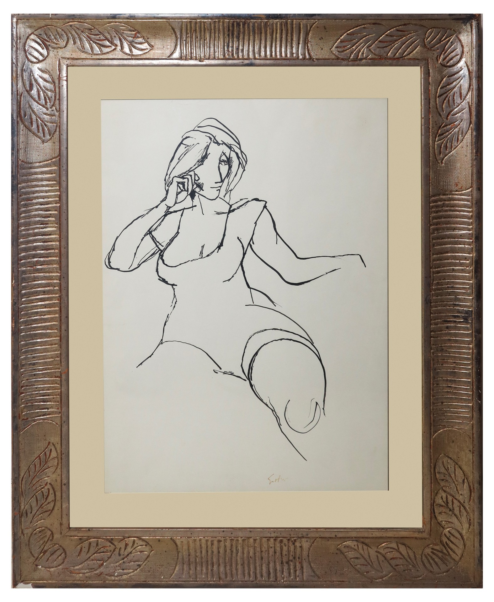 Renato Guttuso (Bagheria 1911-Roma 1987) - Nudo di donna h cm 50 x cm 35, in cornice cm 73 x cm 58 china su cartoncino Firmato in basso. Timbro a secco della Galleria D'Arte Consorti Roma con firma di Augusto Consorti e firma per autentica del pittore Guttuso sulla stessa foto