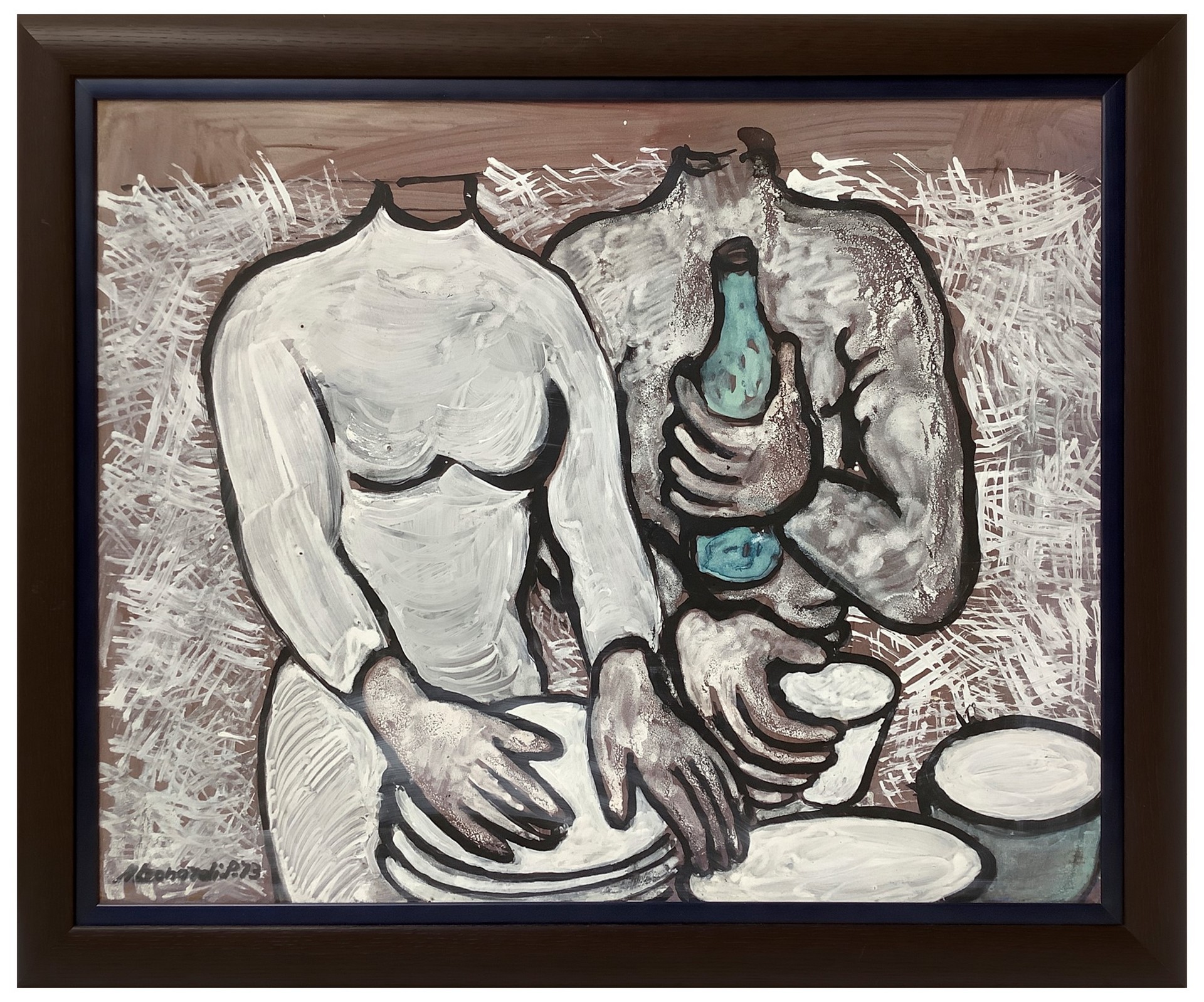 Maria Leonardi Pennisi (Acireale) - La bottiglia verde in cornice h cm 77x93; senza h cm 64x80 acrilico su masonite