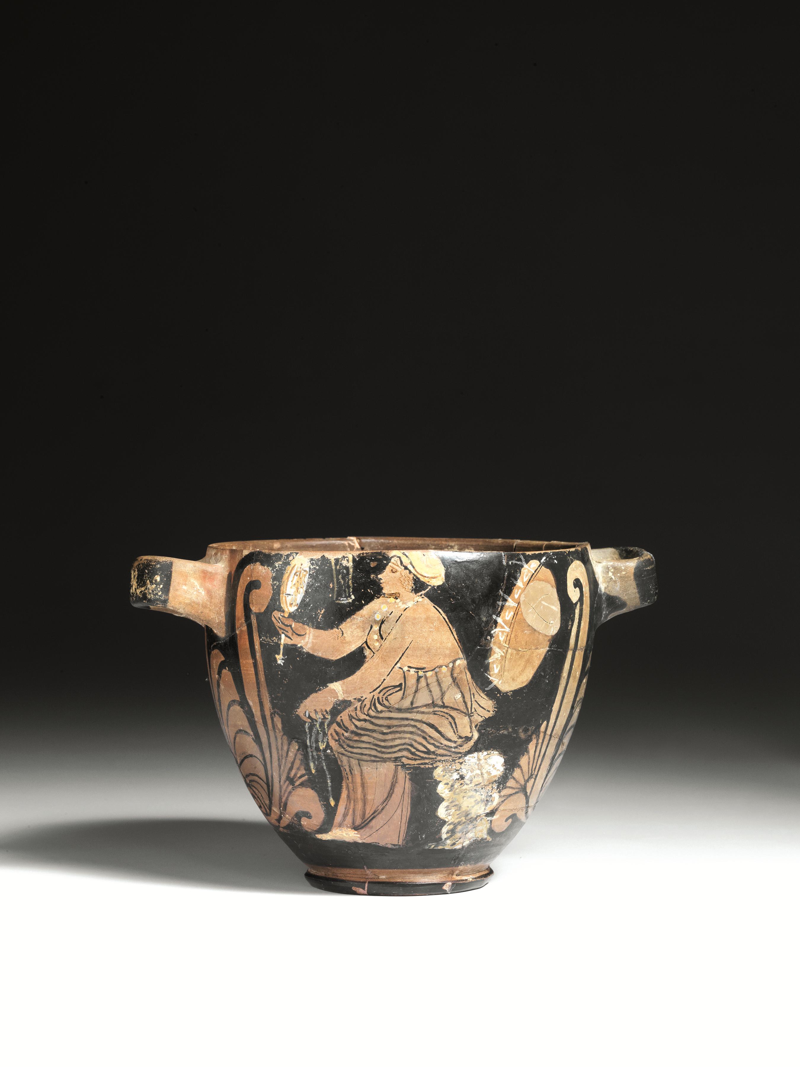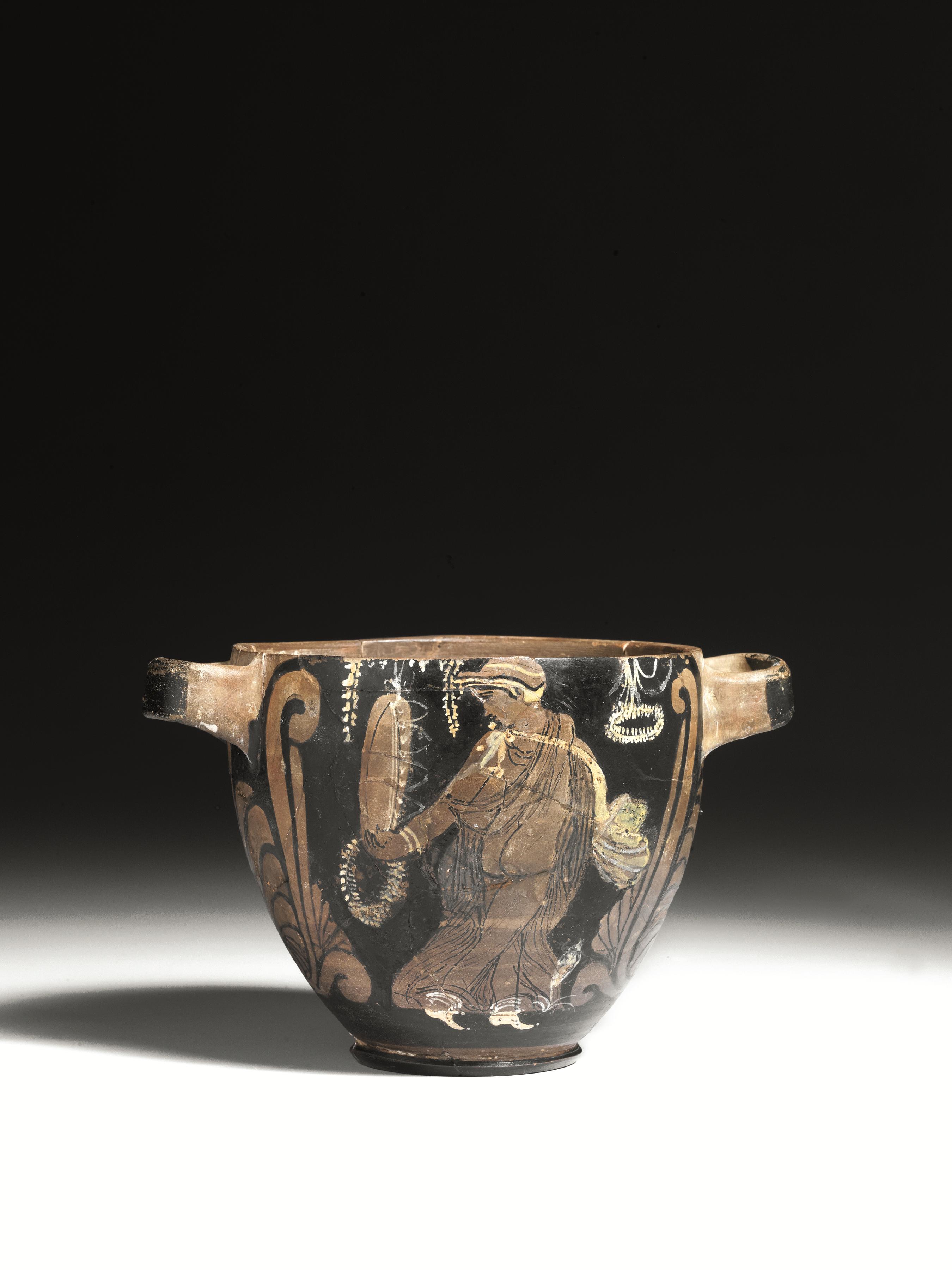 Skyphos apulo a figure rosseMateria e tecnica: argilla figulina rosata,...