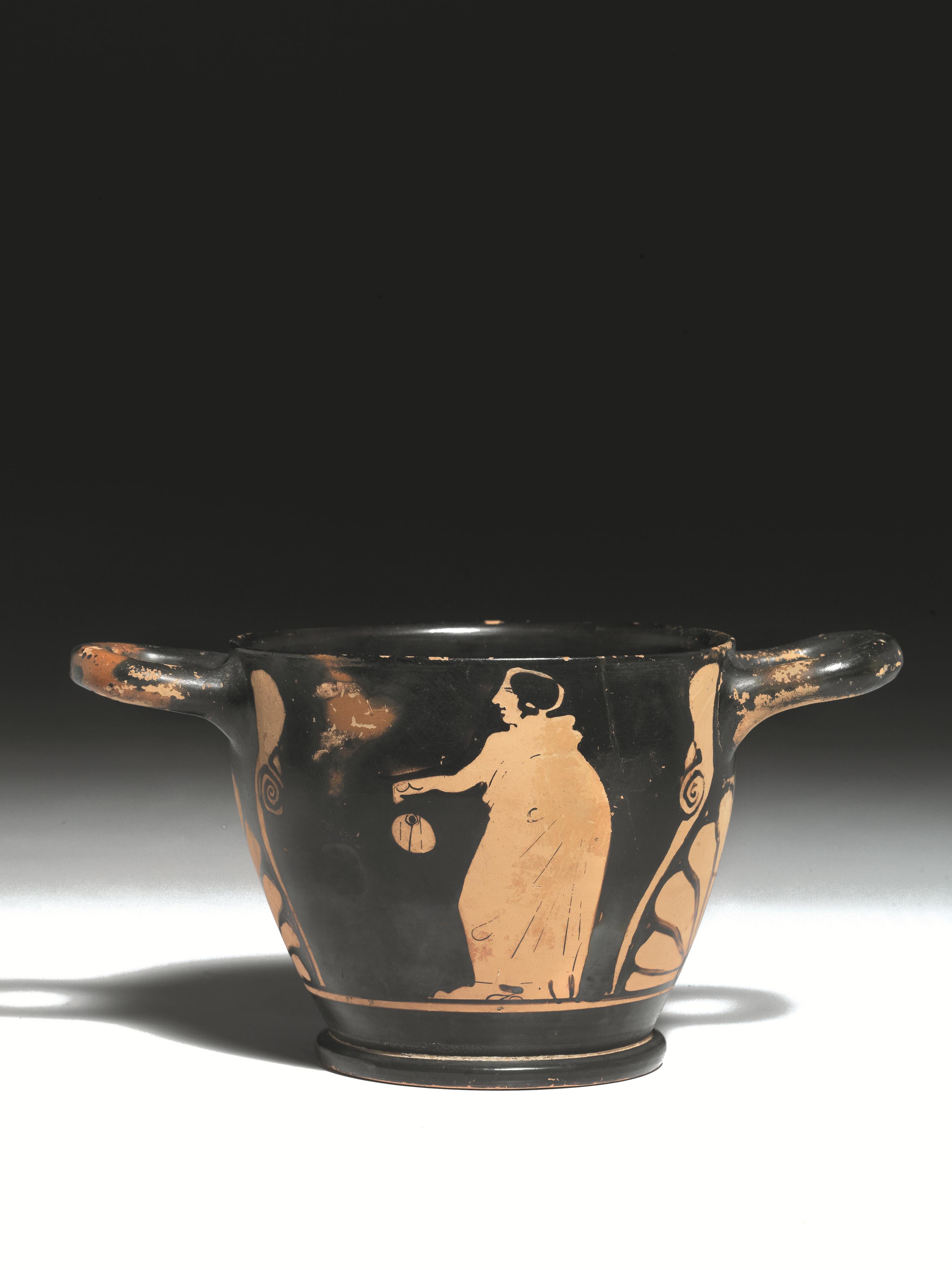 Skyphos attico a figure rosseMateria e tecnica: ceramica figulina arancio;...