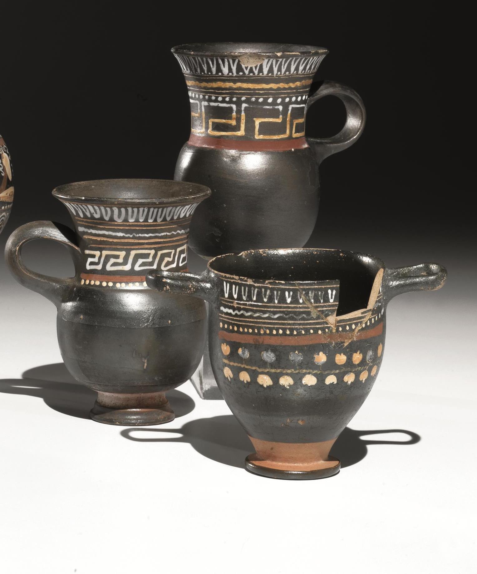 Due boccali ed uno skyphos nello stile di Gnathia Materia e tecnica: argilla...