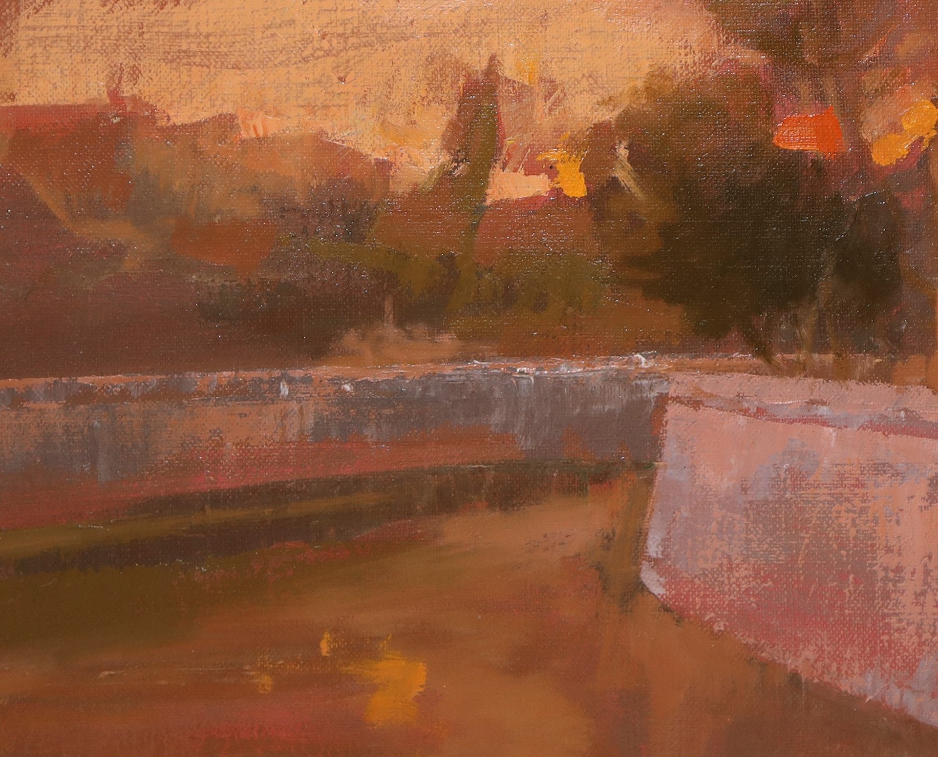 Ugo Attardi (Genova 1923-Roma 2006) - Paesaggio romano cm 30x40; in cornice cm 52x62 olio su tela Firmato in basso a destra Attardi e sul retro timbro della Galleria Consorti di Roma, con firma di Augusto Consorti e data 28 Novembre 1998