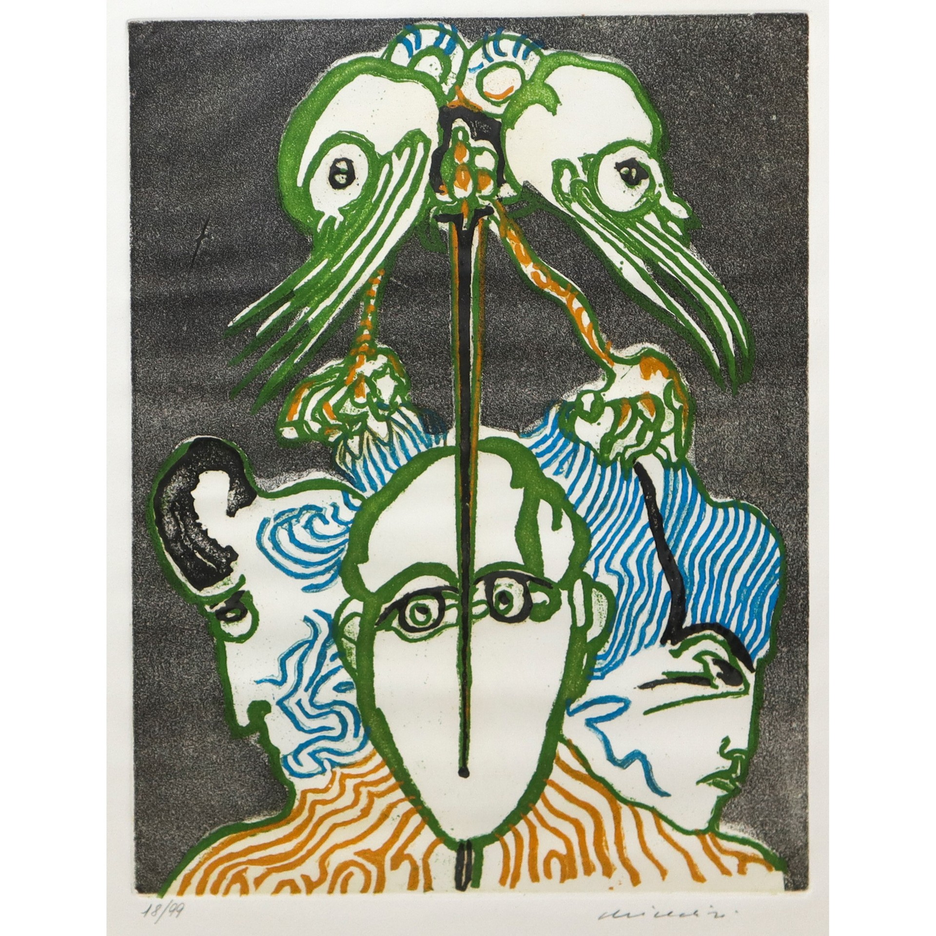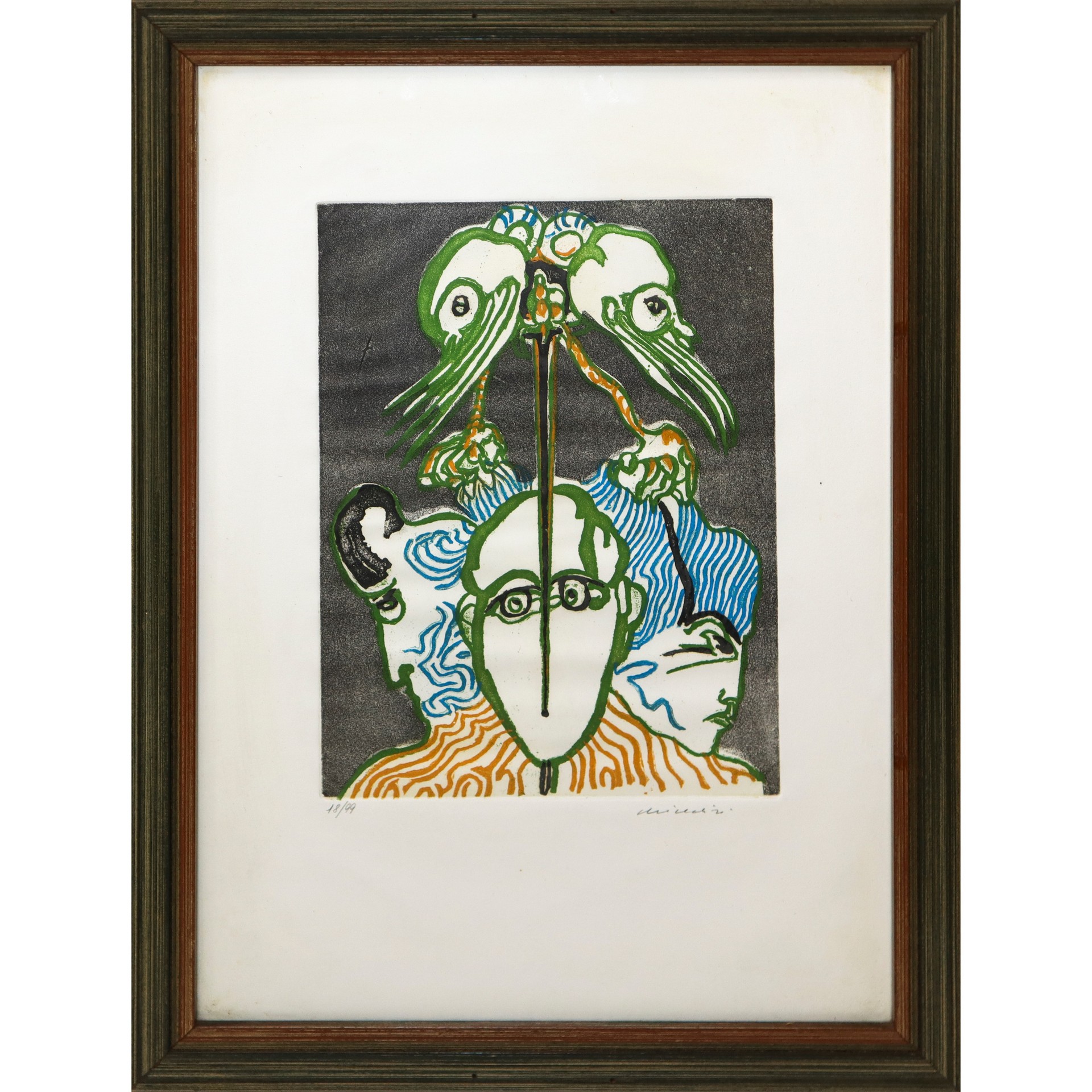 Remo Brindisi (Roma 1918-Lido di Spina 1996) - Pastorale Litografia - H Cm 50 x 35, in cornice cm 58 x 44 Firmato in basso a destra, N.18/99.Firmato in basso a destra, N.18/99.