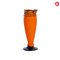 BOEMIA - Vaso in vetro “Tango” con corpo nei toni dell’arancio e piede a contrasto, decorato con filamento applicato blu lungo il collo. altezza cm 24,6. difetti.