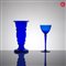 MANIFATTURA EUROPEA- Ensemble di vetri nei toni del blu composto da vaso e calice in vetro blu cobalto, altezze cm 22,4; cm 19,3. lievi difetti.