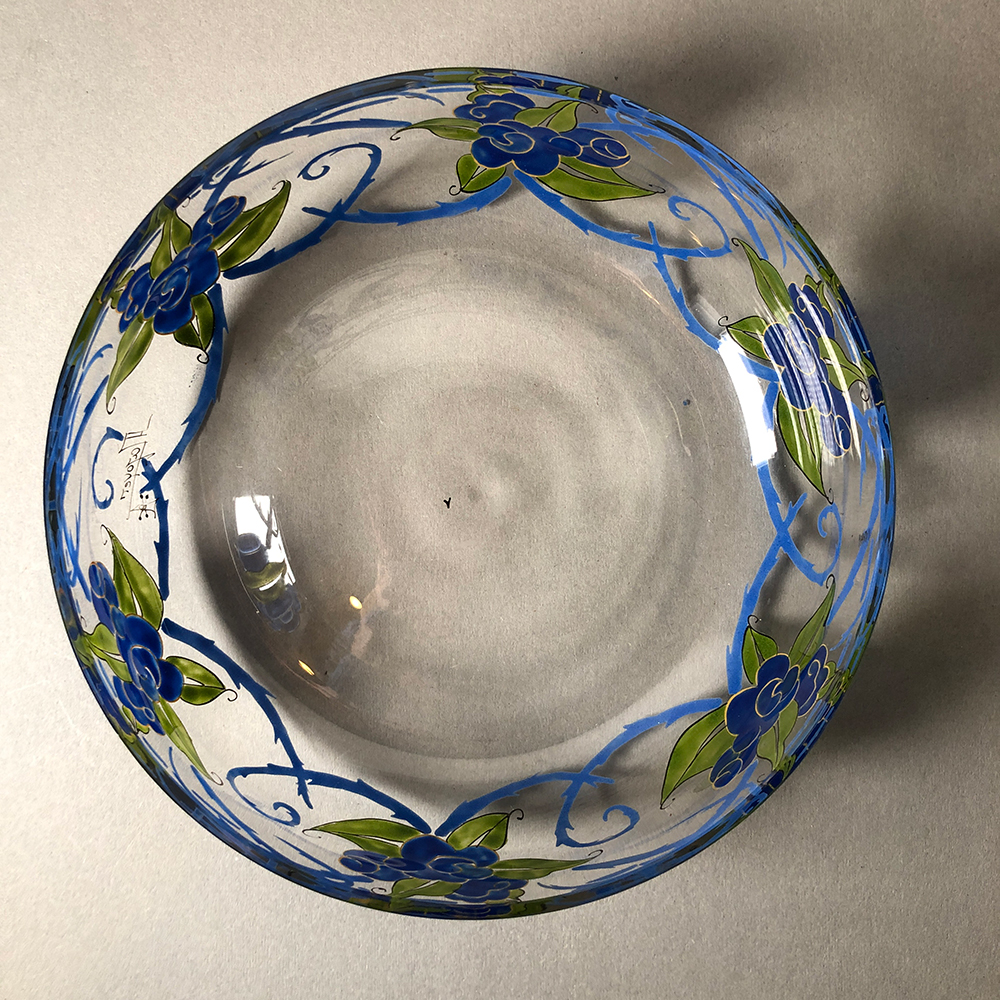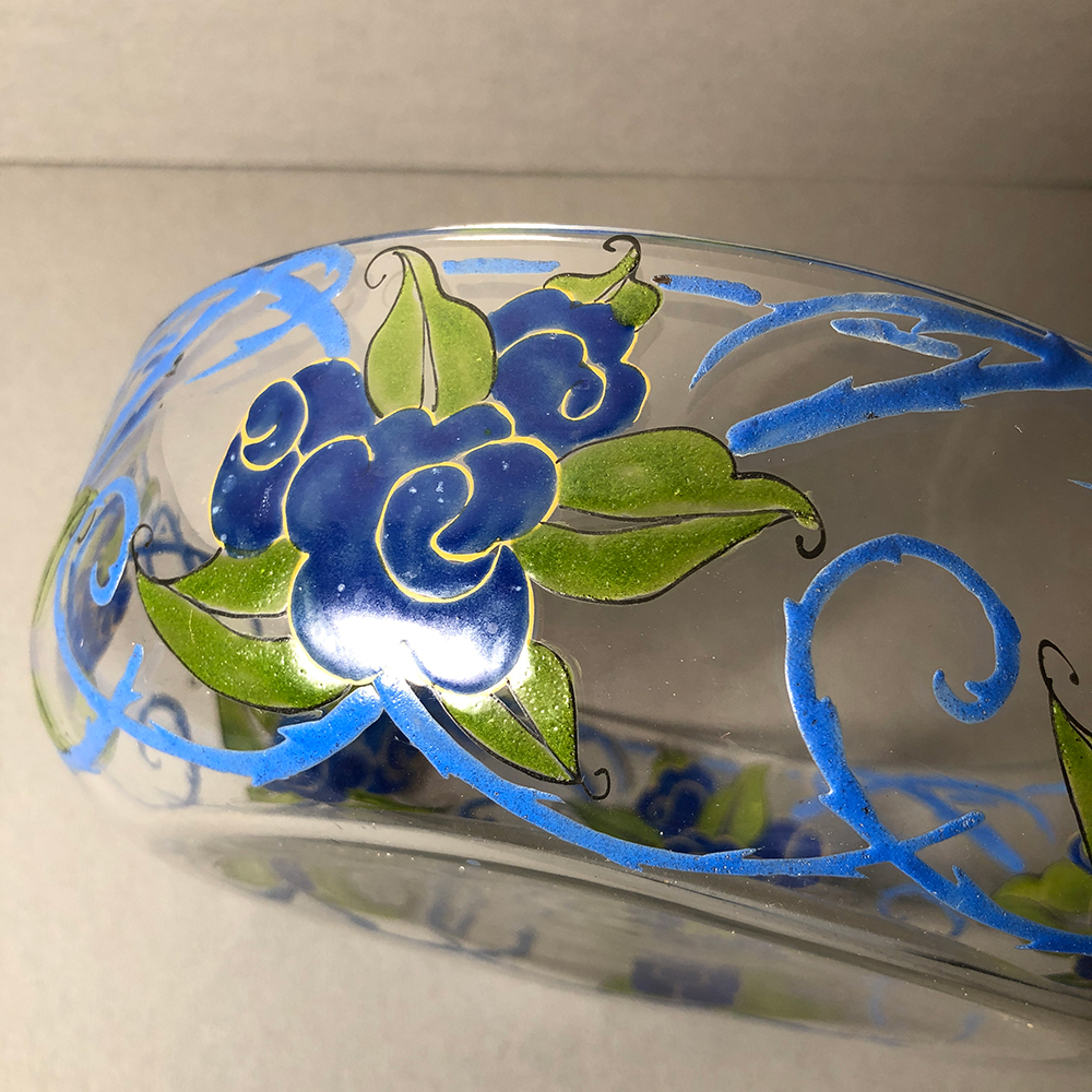 ADRIEN MAZOYER - Coppa in vetro trasparente con decoro floreale a smalti policromi, anni ‘20, altezza cm 21.