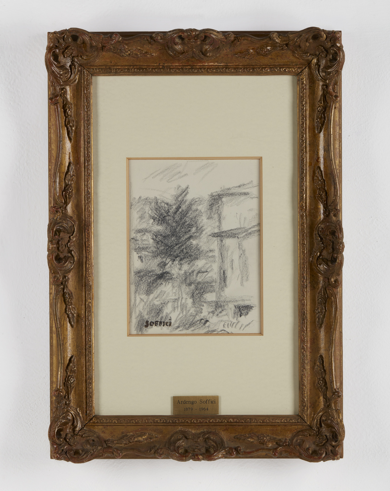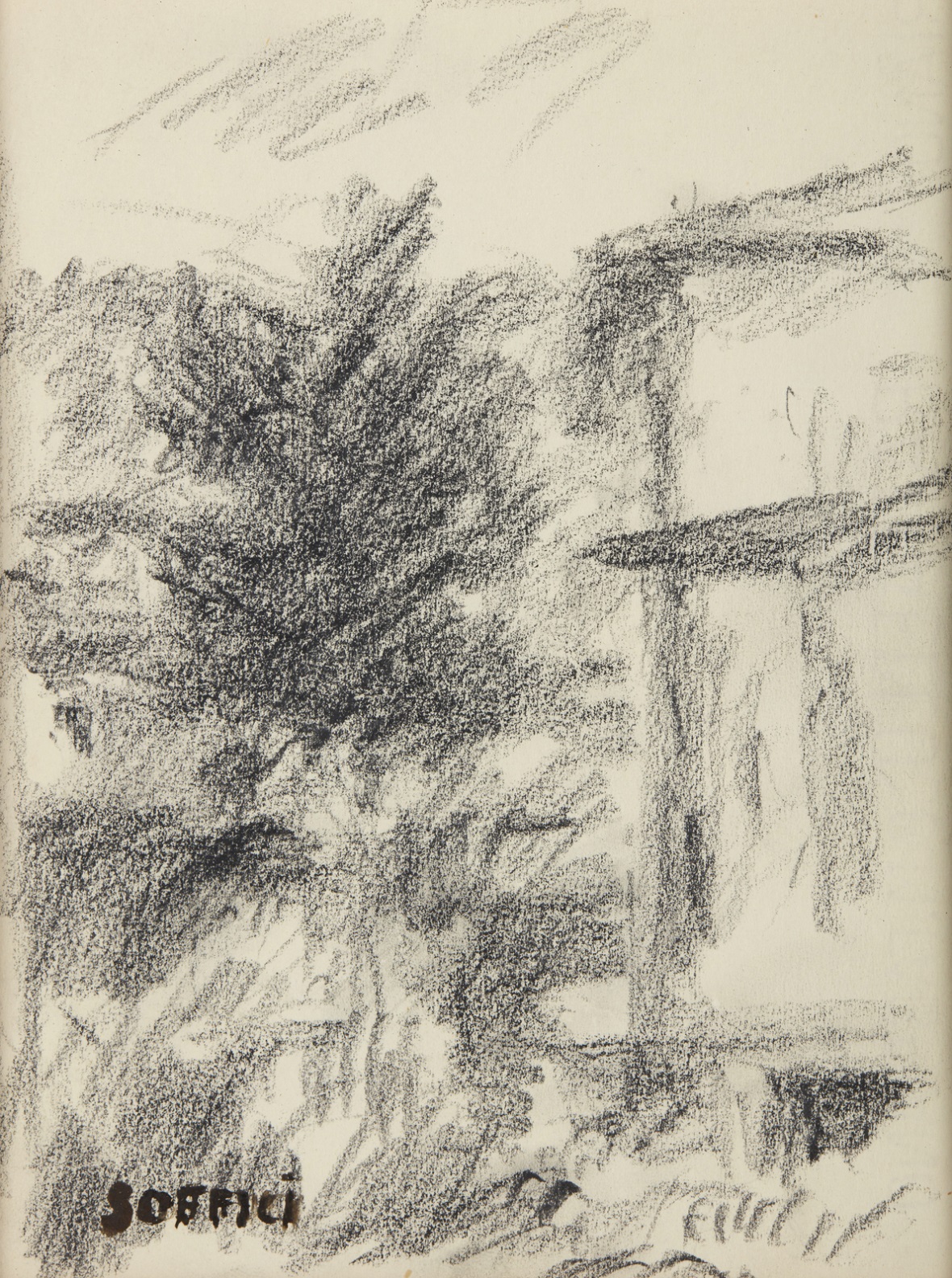 SOFFICI ARDENGO (1879 - 1964) Paesaggio con case. Matita su carta. Cm 17,50 x 23,50. Firma in basso a sinistra. Provenienza: Dono dell'artista alla Famiglia Guajana; Collezione Gujana, Milano. Cornice presente