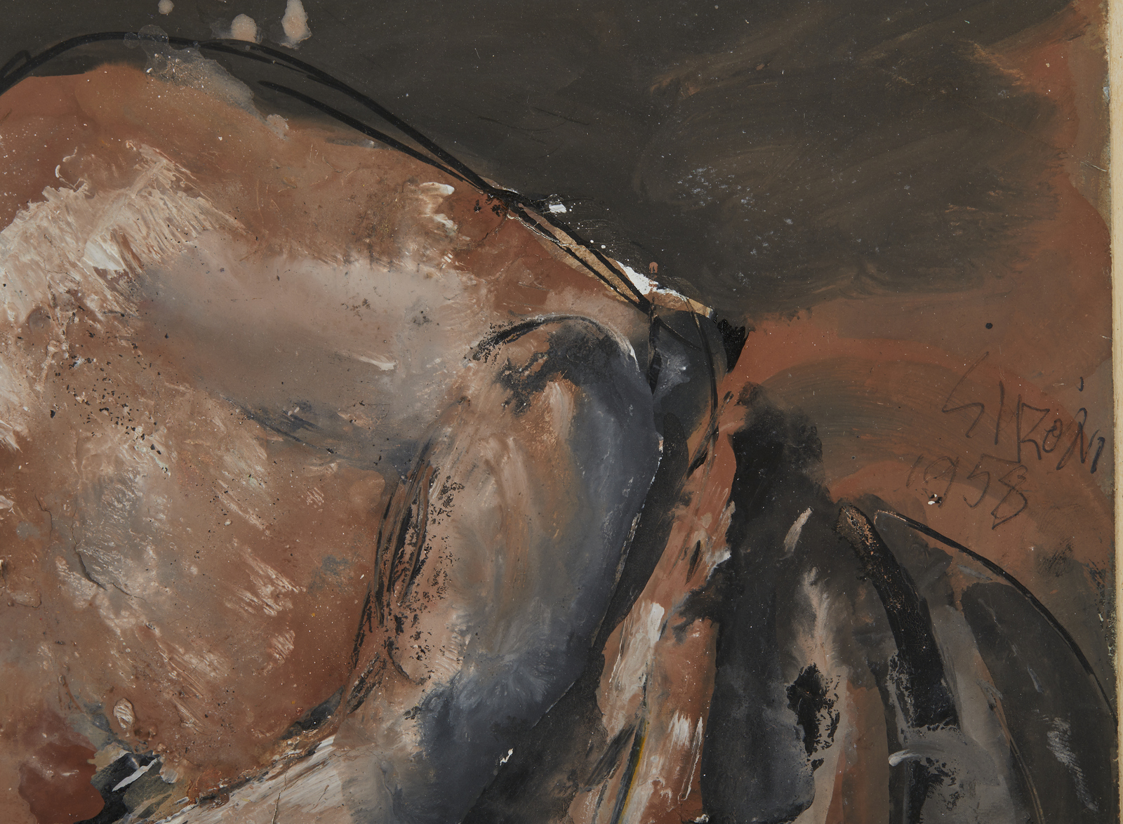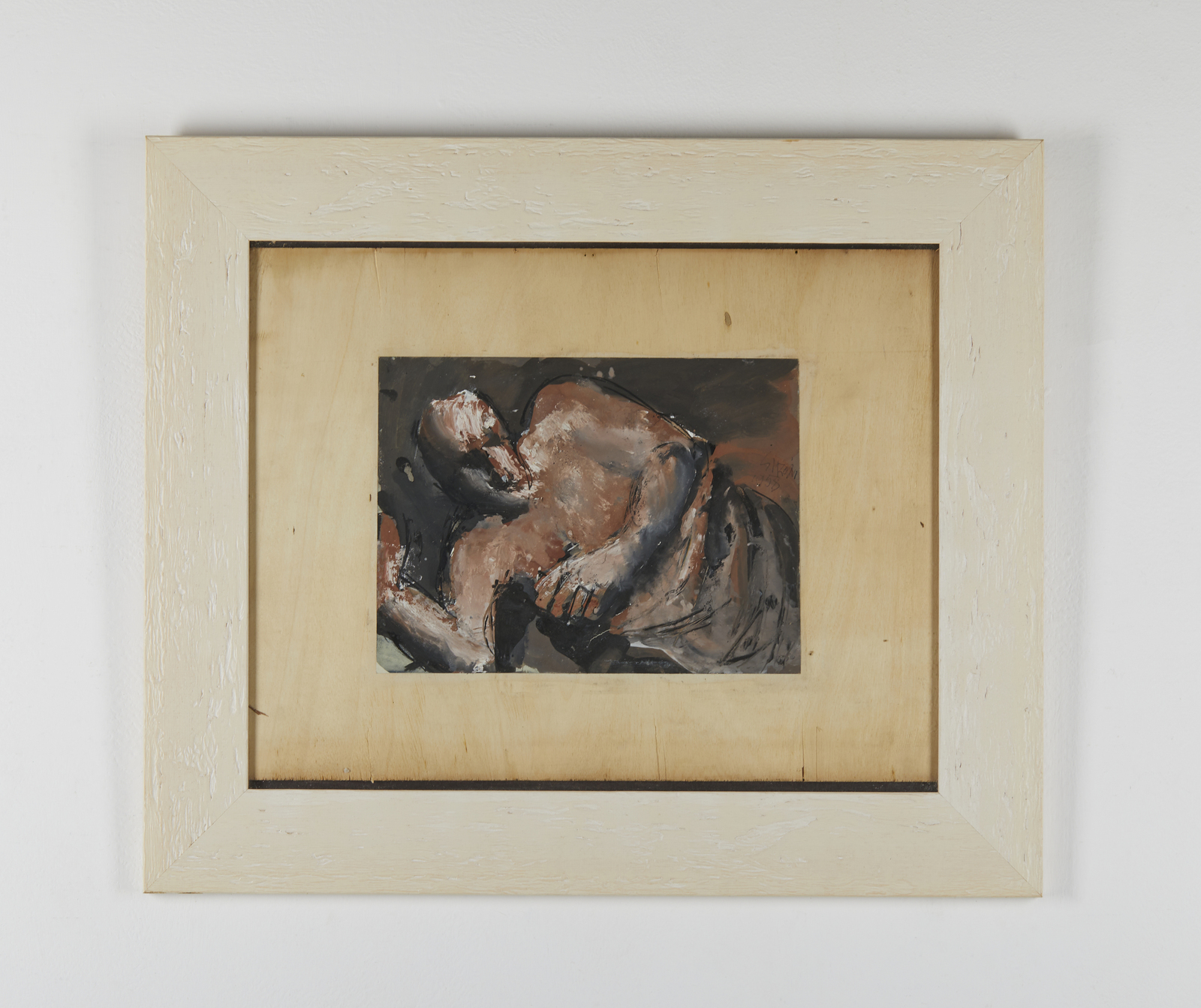 SIRONI MARIO (1885 - 1961) Figura sdraiata. 1958. Tecnica mista su carta applicata su tavola. Cm 30,00 x 22,50. Firma e anno a destra al centro a matita. Opera archiviata presso l'Associazione per il Patrocinio e la Promozione della Figura e dell'opera di Mario Sironi, Milano, come da documentazione fotografica allegata riportante il relativo numero d'inventario. Lievi difetti. Cornice presente