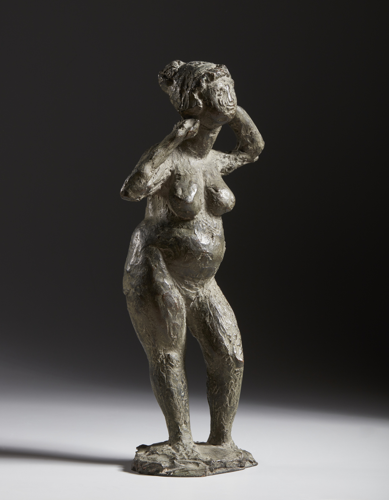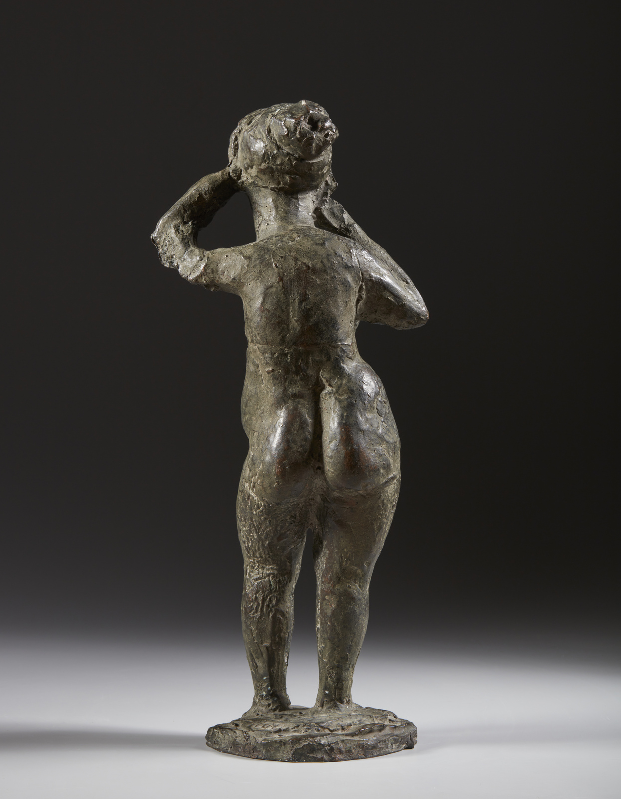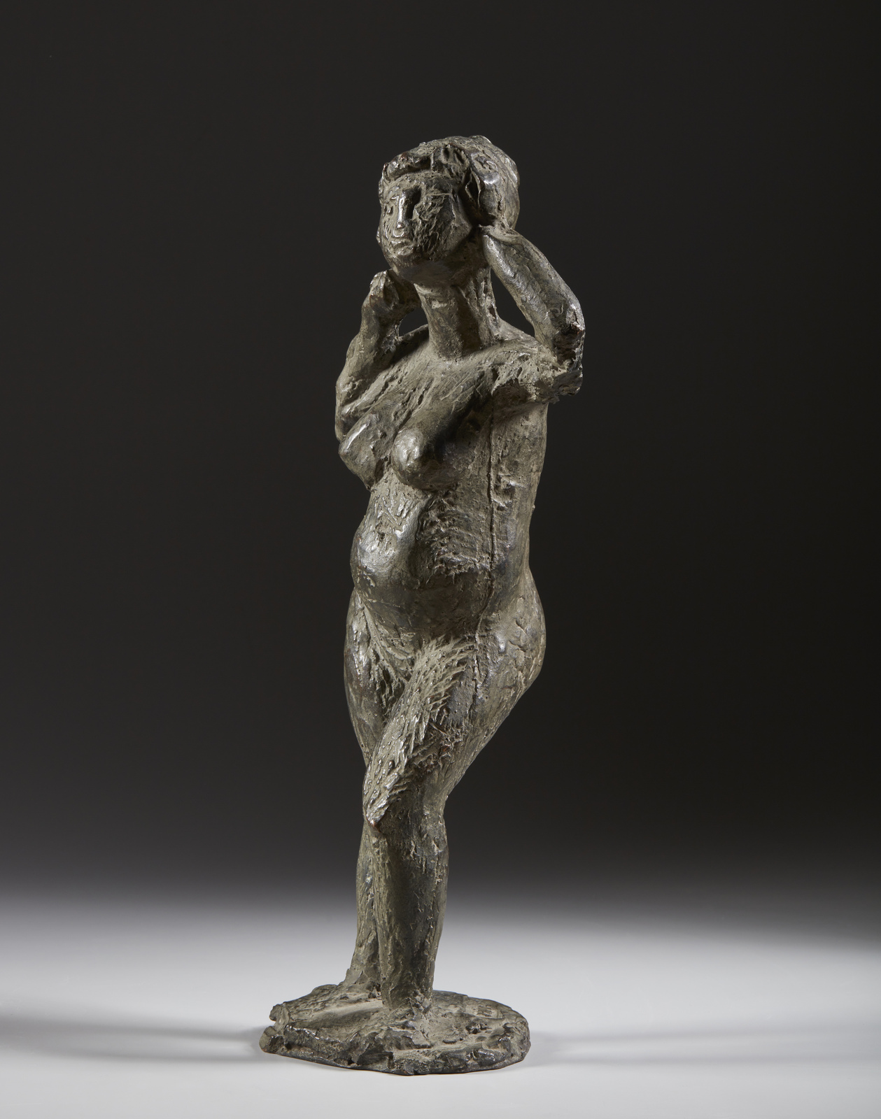 MARINI MARINO (1901 - 1980) Piccola Pomona. 1943. Bronzo a patina verde. Cm 18,00 x 43,00 x 11,50. Firma monogrammata alla base. Edizione totale: 1 esemplare in gesso + 8 esemplari in bronzo. Provenienza: Collezione privata, Roma. Pubblicazione: Patrick Waldberg, Herbert Read & Gualtieri di San Lazzaro: L'OEuvre complète de Marino Marini, Parigi, 1970; Mario de Micheli, ed, Marino Marini, Catalogo del Centro di Documentazione dell' Opera di Marino Marini, Pistoia, 1990; Giovanni Carandente, Marino Marini, Catalogo Raisonné delle Sculture,Milano, 1998. Opera archiviata presso la Fondazione Marino Marini, Pistoia, come da documentazione fotografica allegata all'opera riportante il relativo numero d'inventario. Si ringrazia la Fondazione Marino Marini, Pistoia, per aver contribuito alla stesura della scheda.