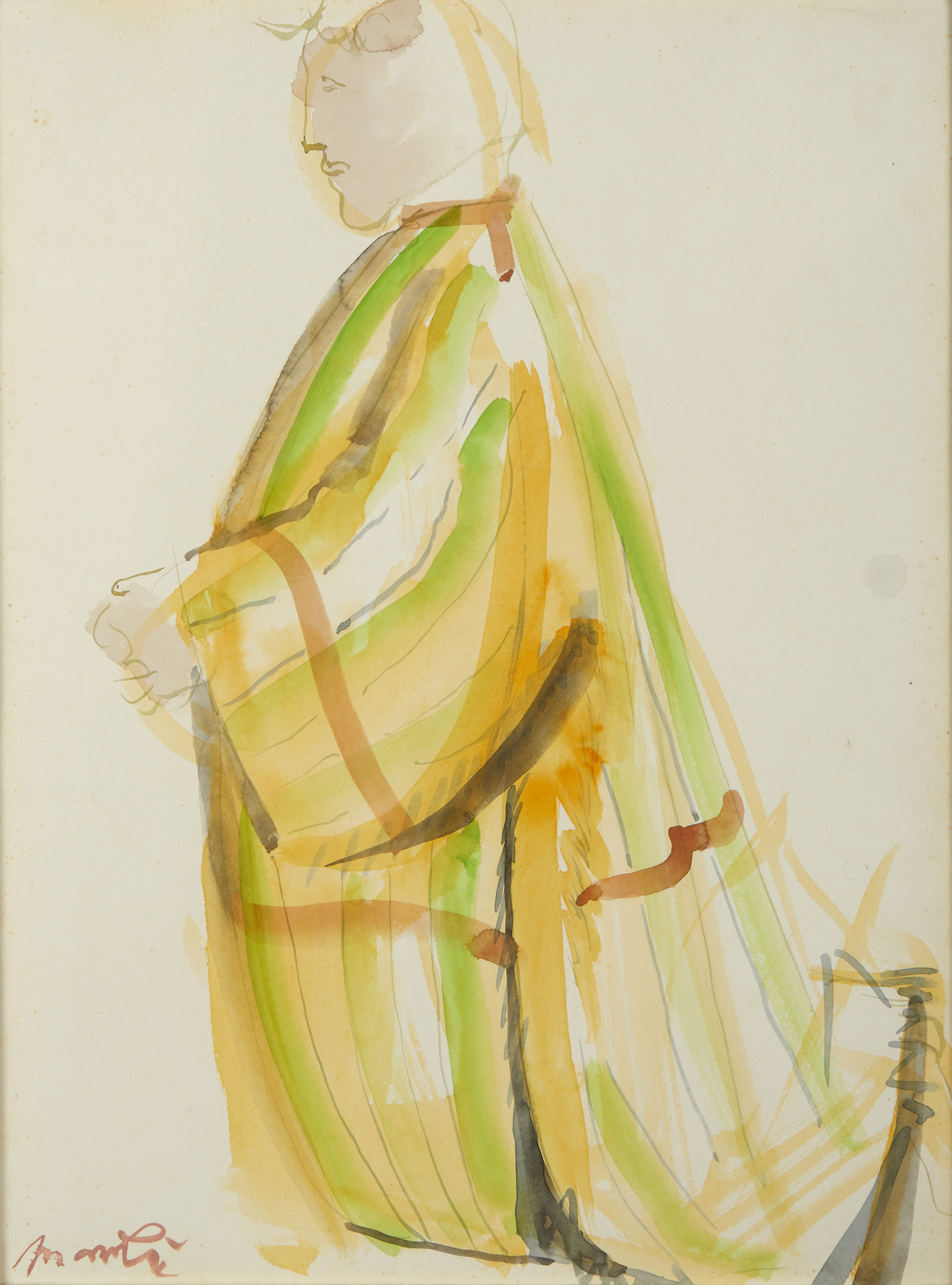 MANZU' GIACOMO (1908 - 1991) Senza titolo. Acquerello su carta. Cm 29,00 x 38,00. Firma in basso a sinistra. Opera archiviata presso l'Archivio Giacomo Manzù. Lievi difetti. Cornice presente